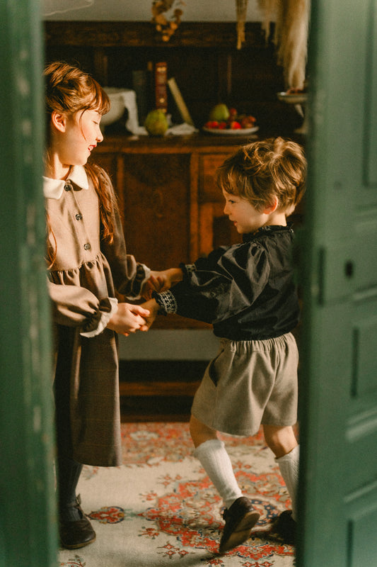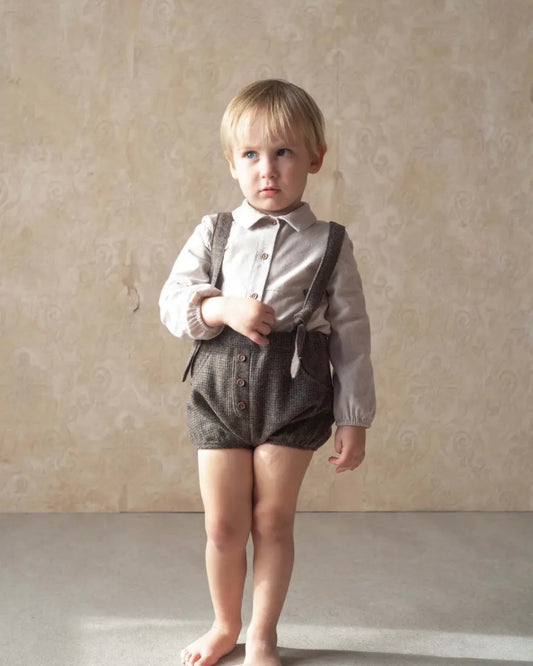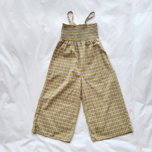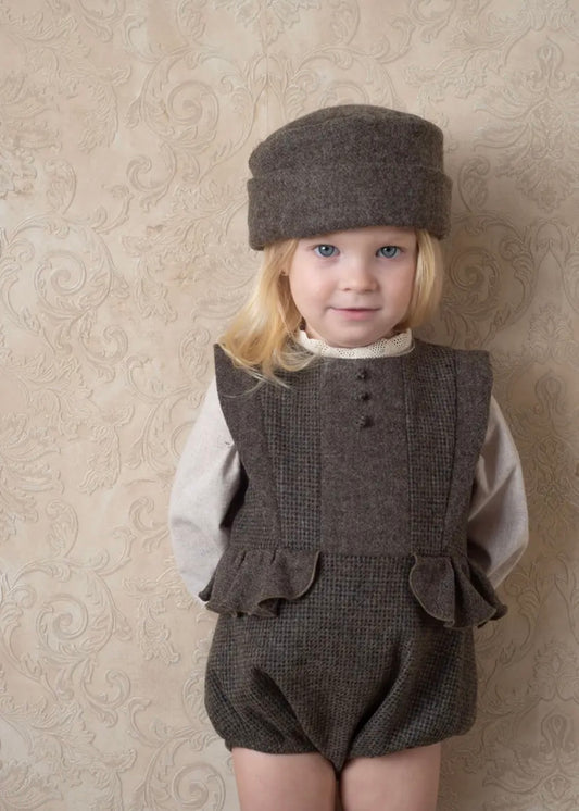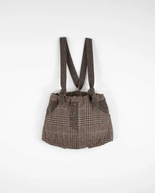 Popelin / Brown plaid woollen culotte with removable straps and placket