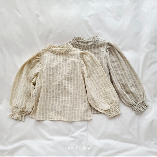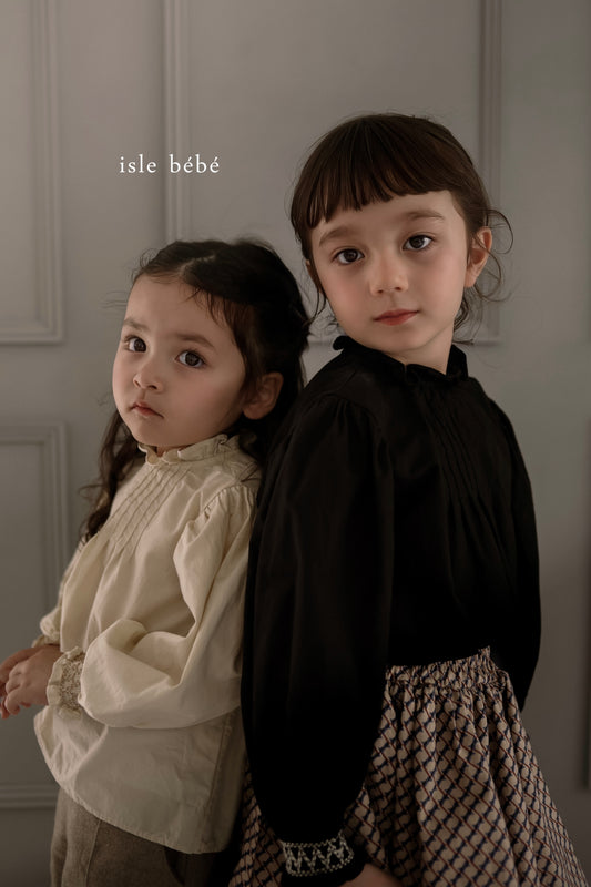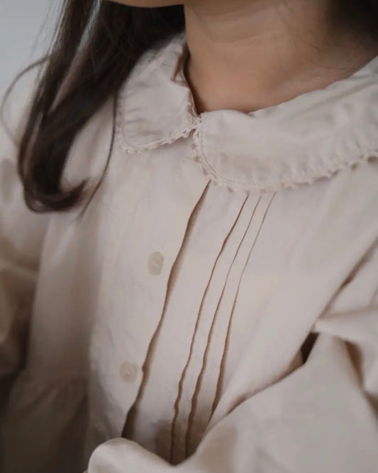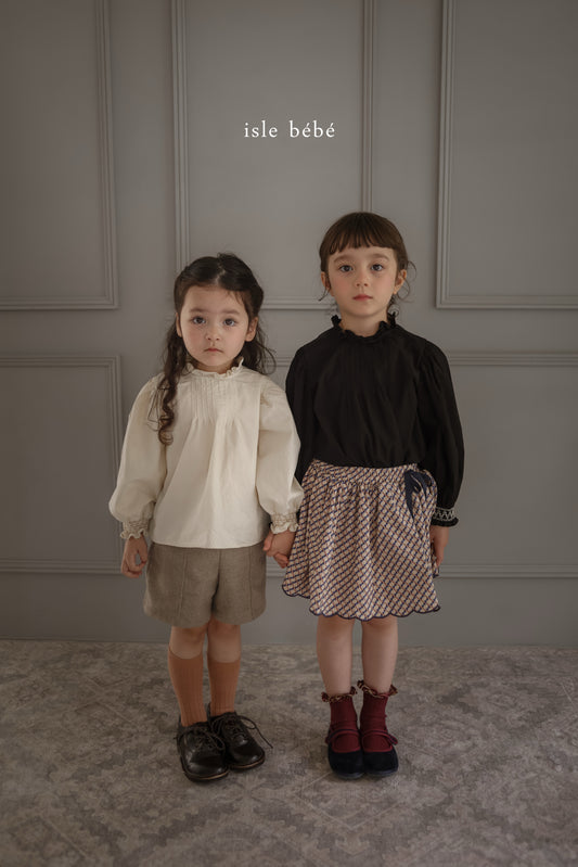 Popelin / Dark grey plaid blouse with embroidered maxi collar