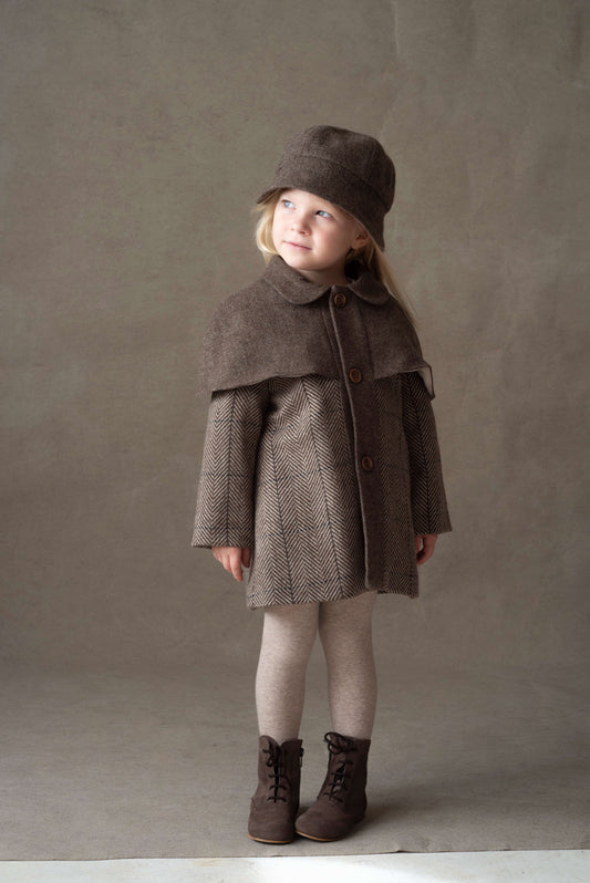 (送料無料)popelin / Brown herringbone woollen cape coat