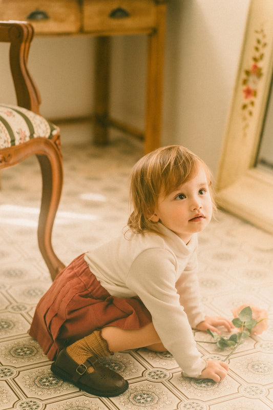 Popelin / Multi-coloured woollen culotte with removable straps and placket