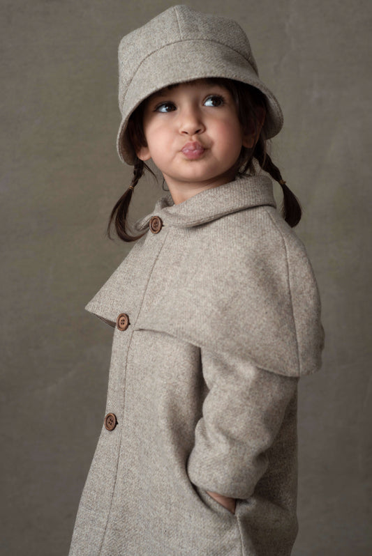 (送料無料)popelin / Brown herringbone woollen cape coat
