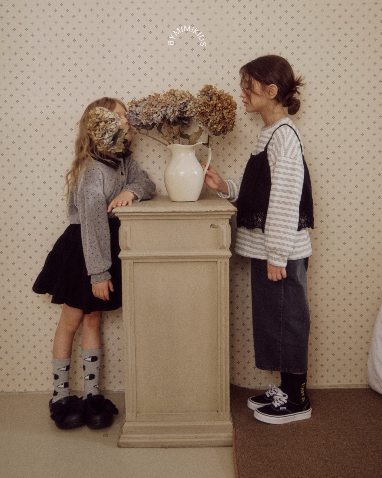 Maya (112cm, 20kg, wearing L, age 6) Emma (125cm, 24kg, wearing XL, age 8)