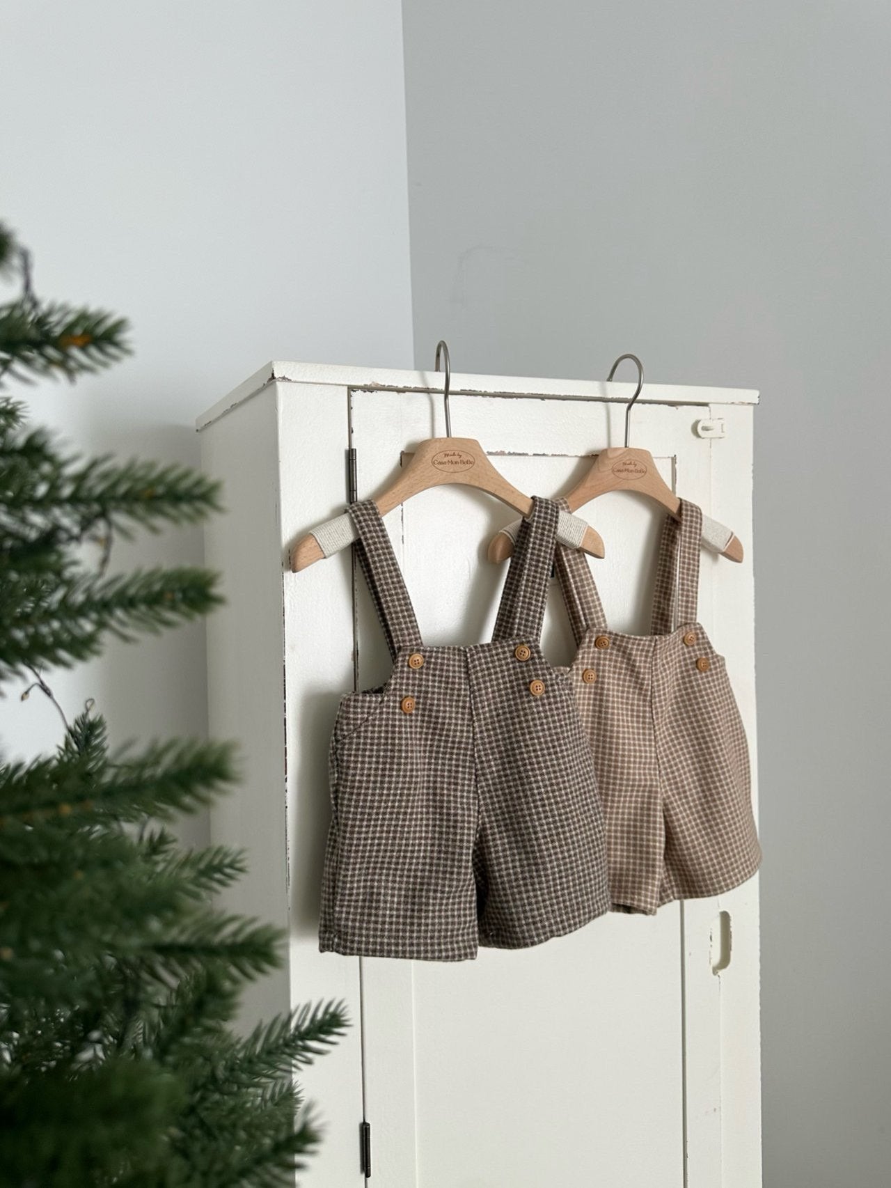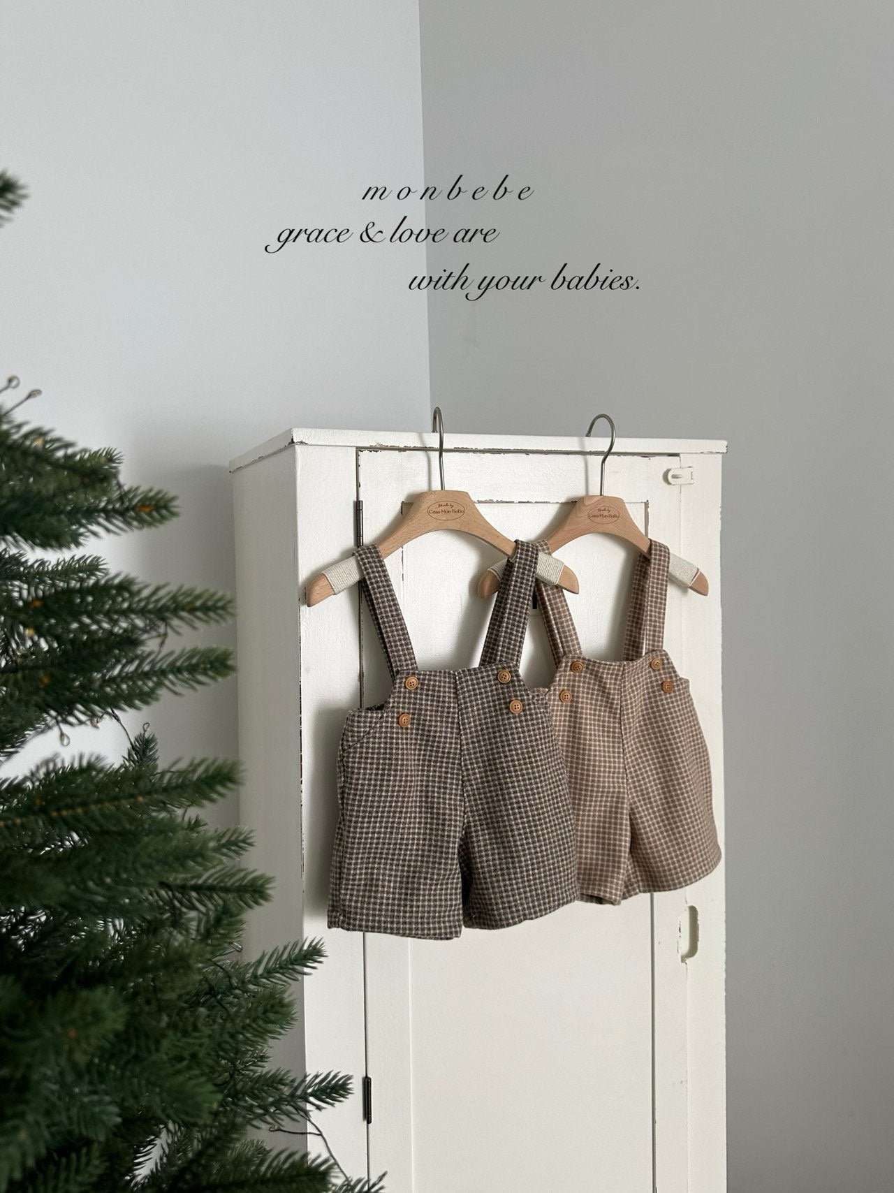 (予約) monbebe / Window Check Overalls Pants