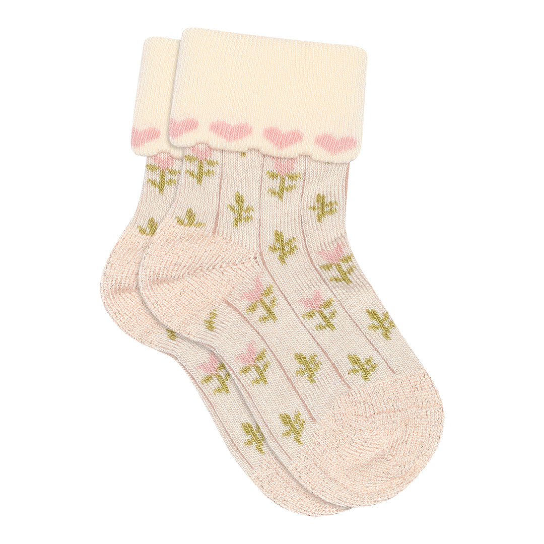 Includes one pair of glitter ribbed socks, one pair of floral socks with glitter detailing, and one pair of striped ribbed socks.