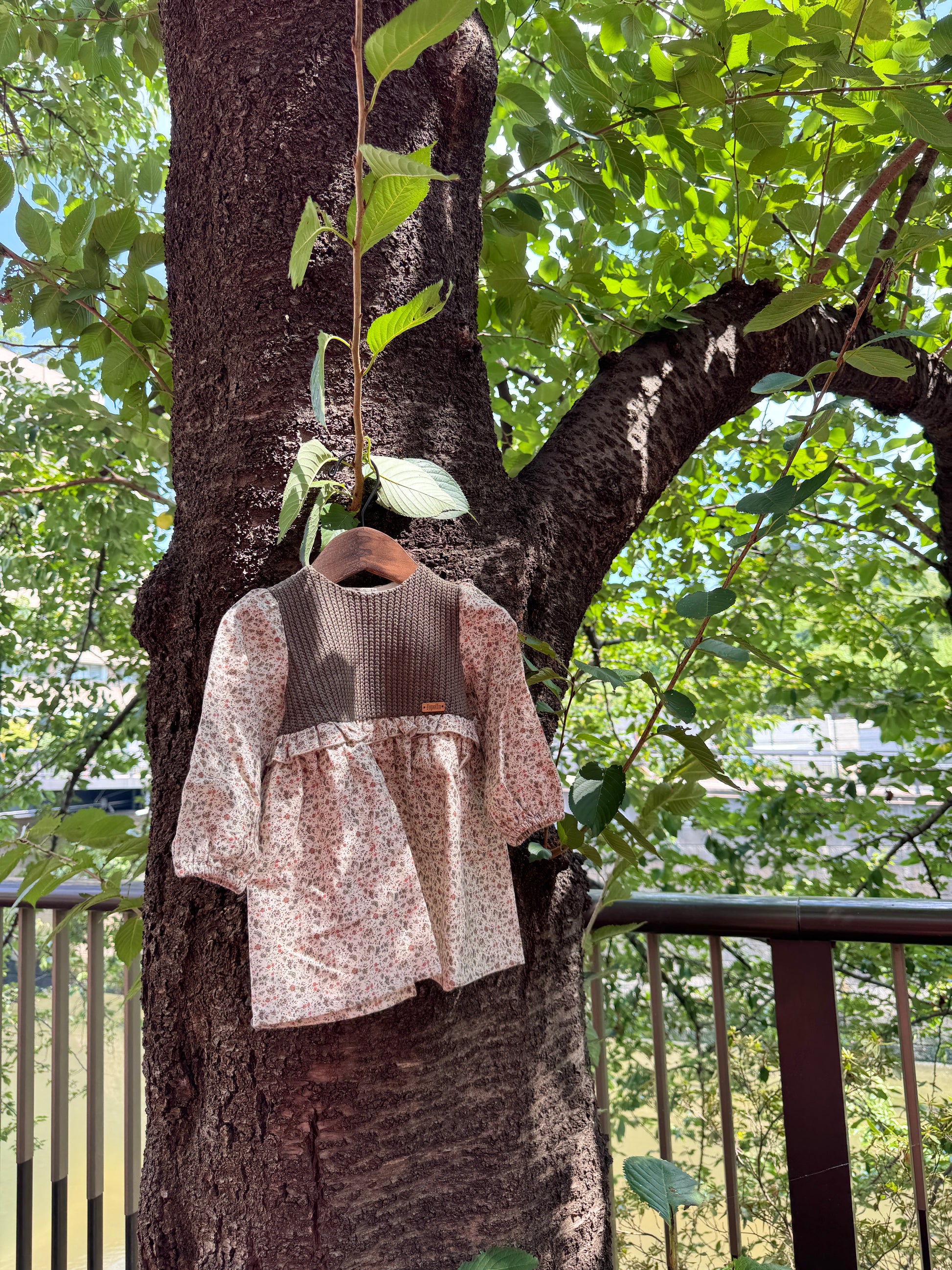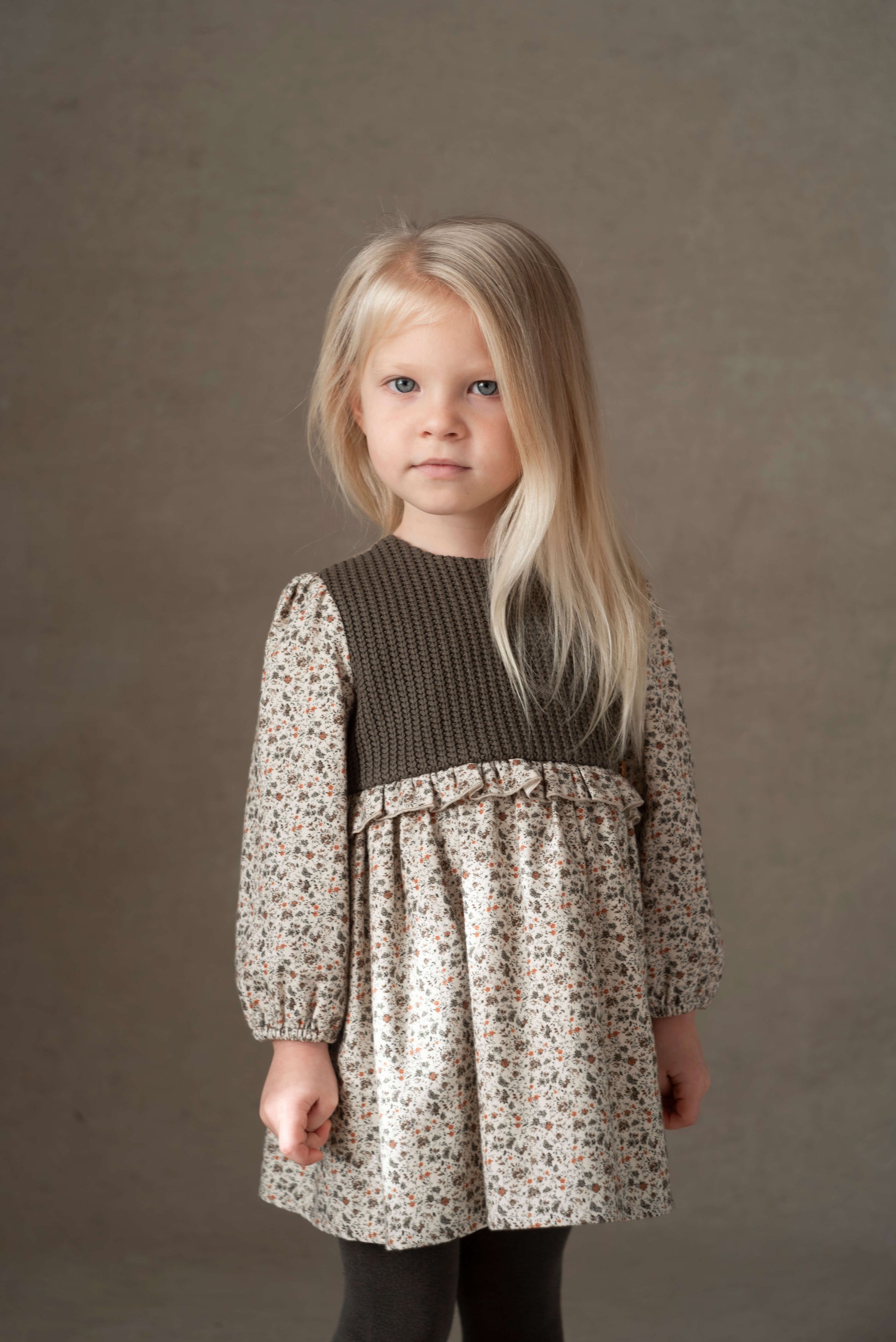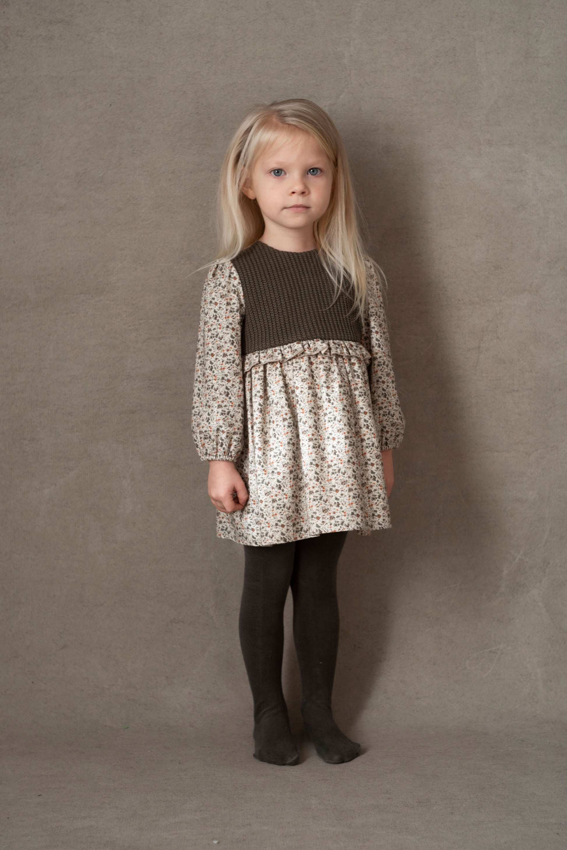 深みのあるカーキの花柄はカラータイツとの組み合わせも楽しめます。