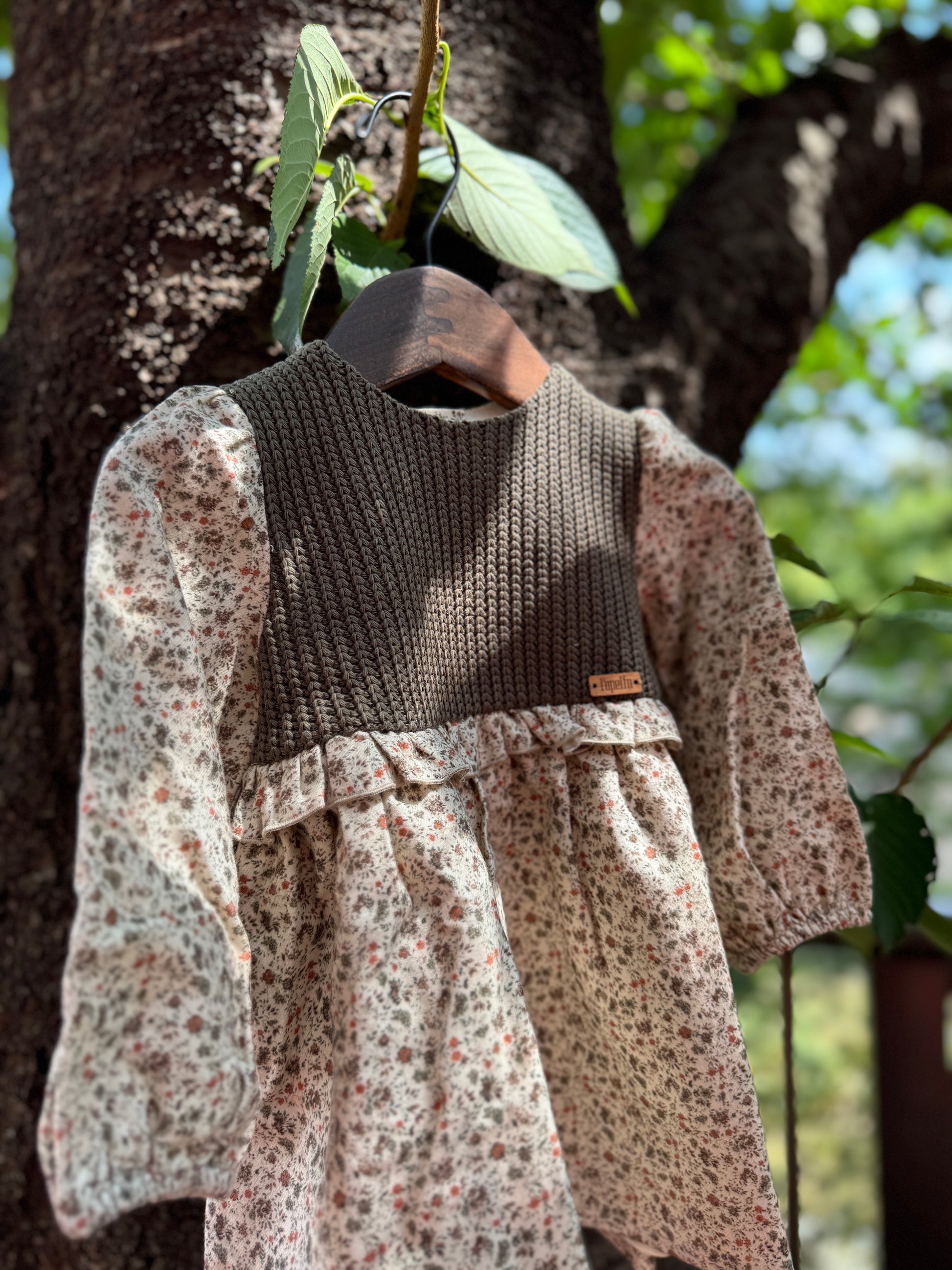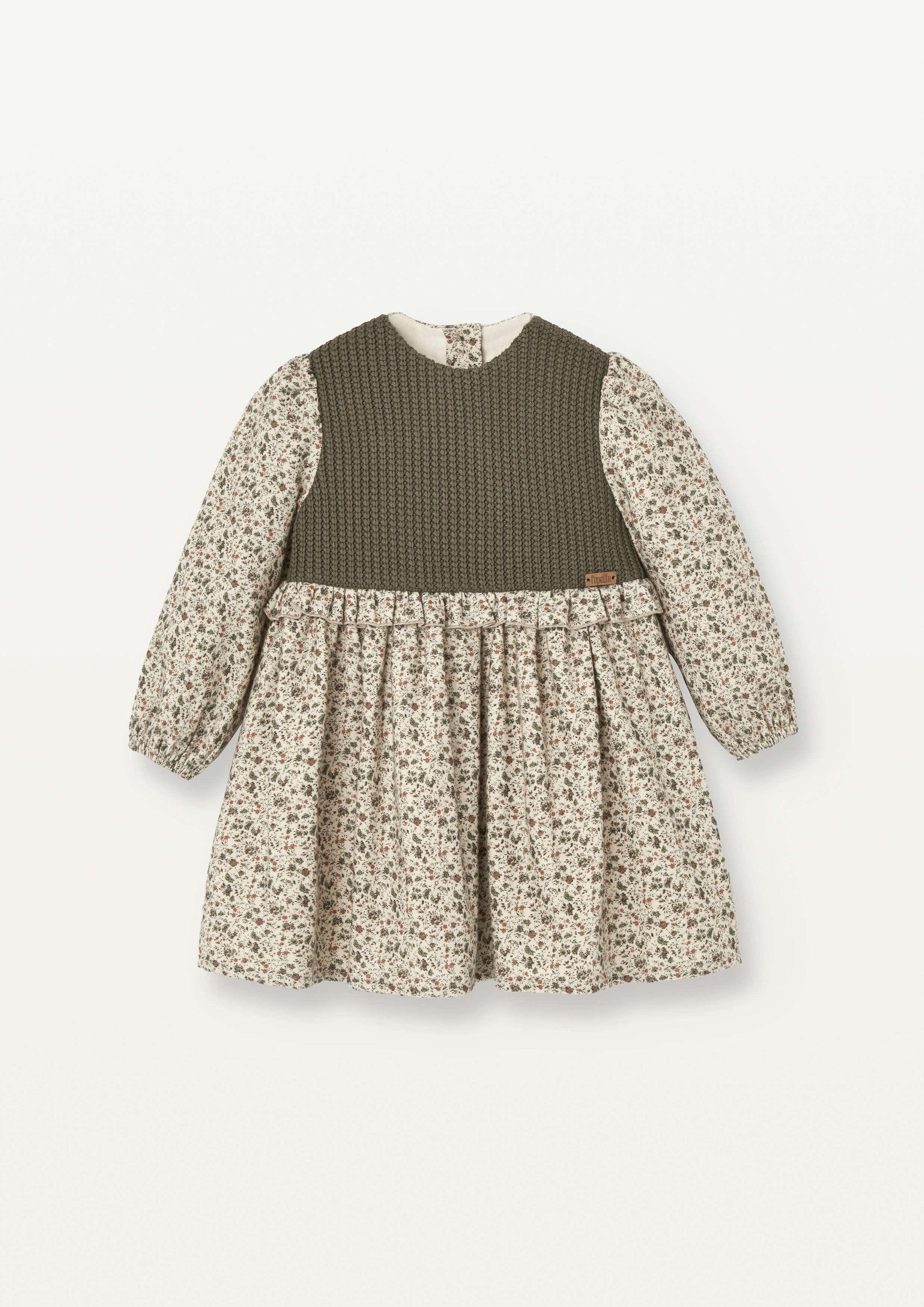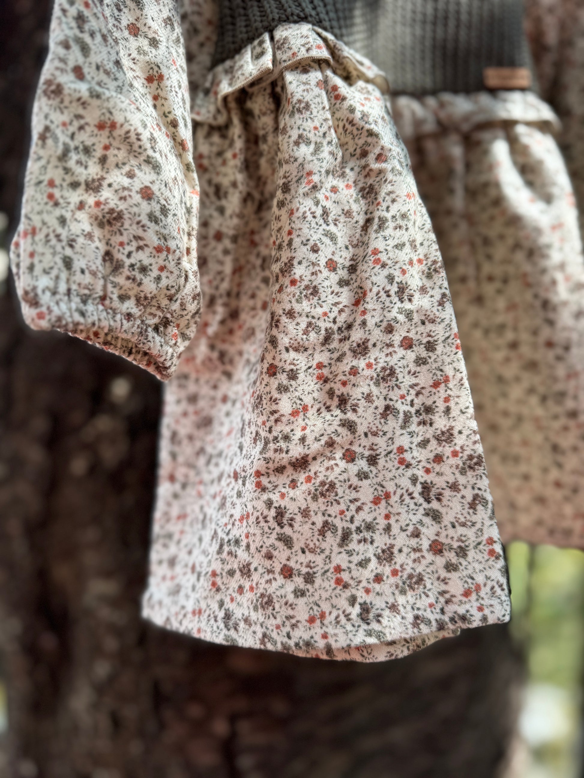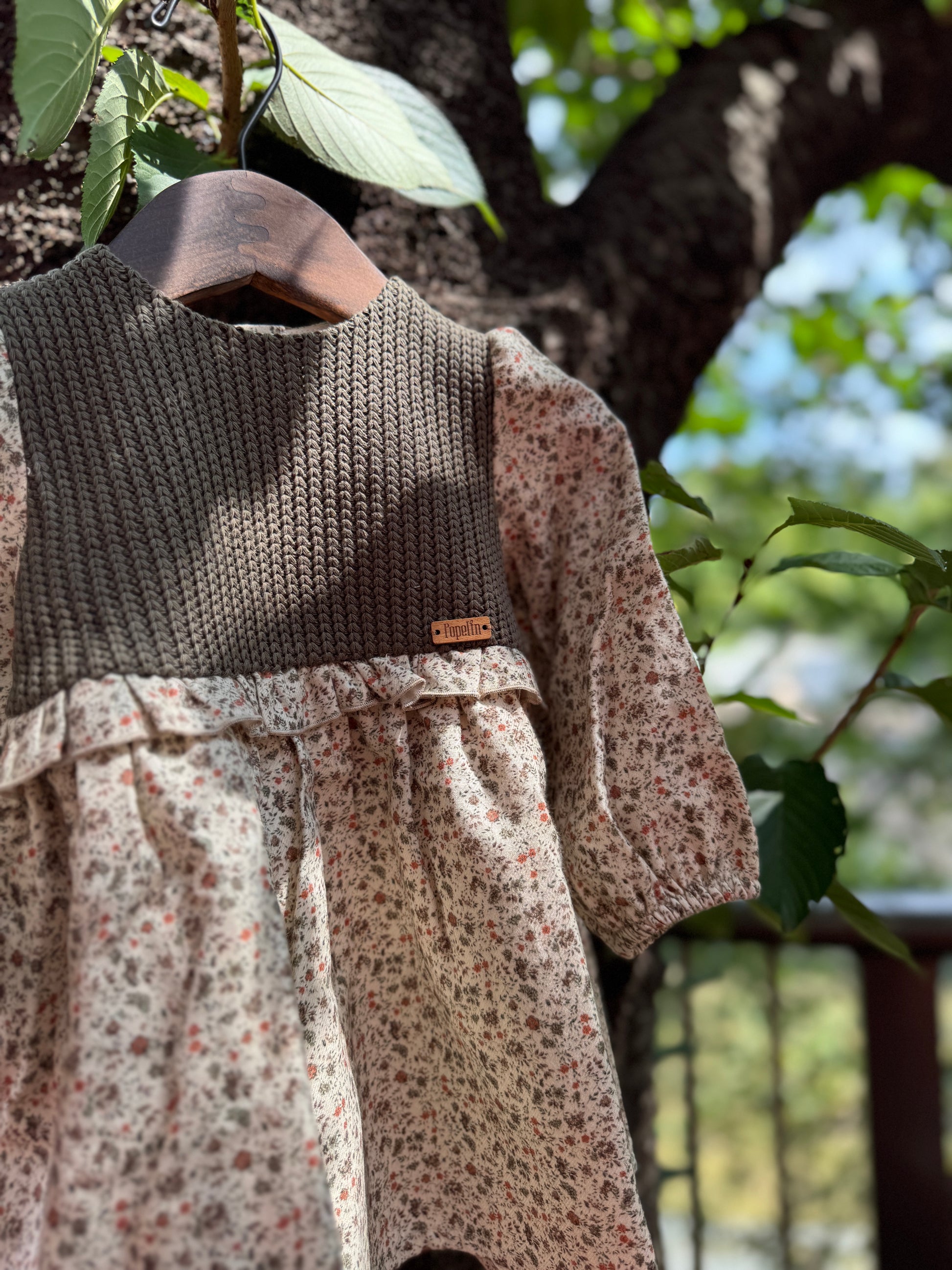 深みのあるカーキの花柄はカラータイツとの組み合わせも楽しめます。