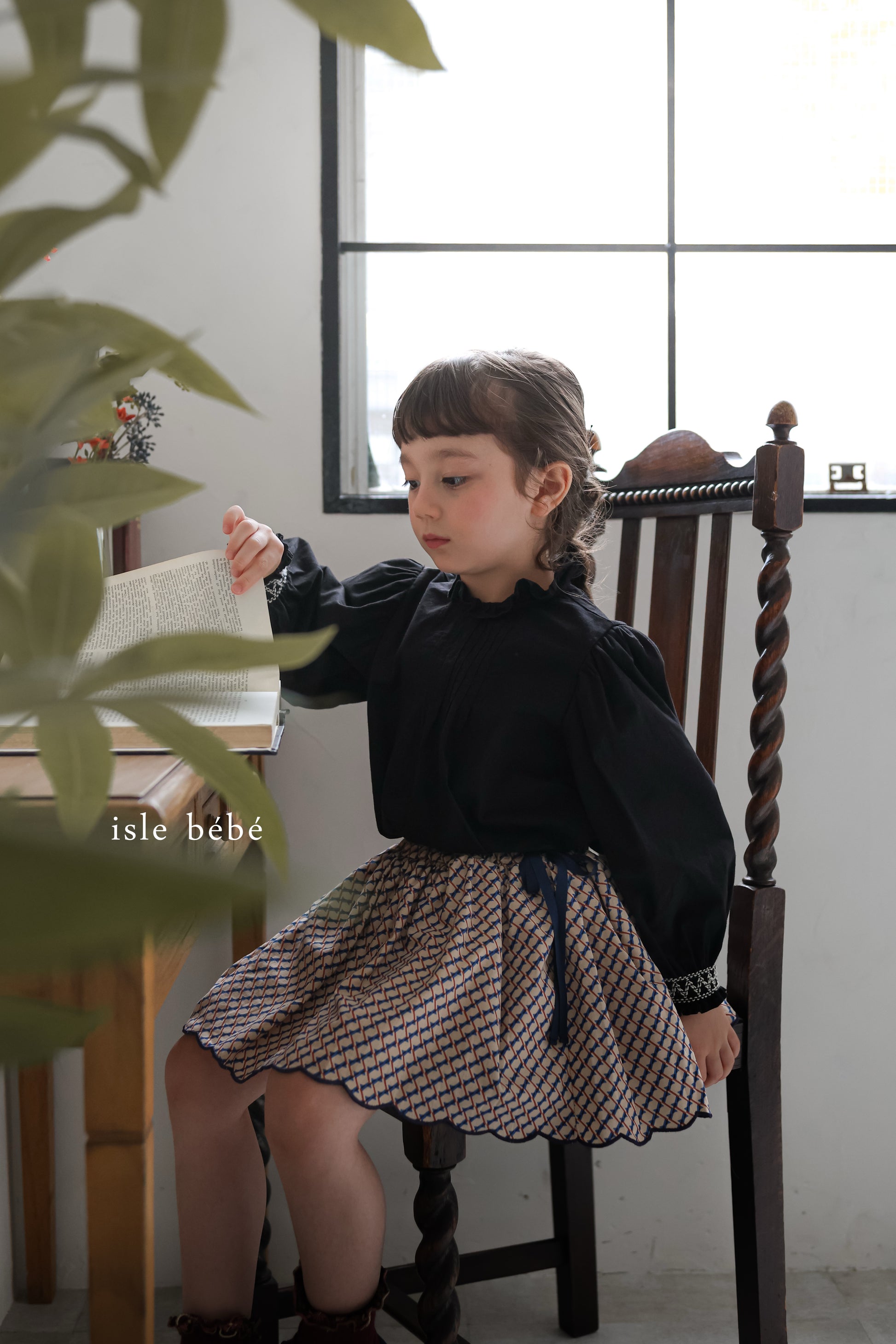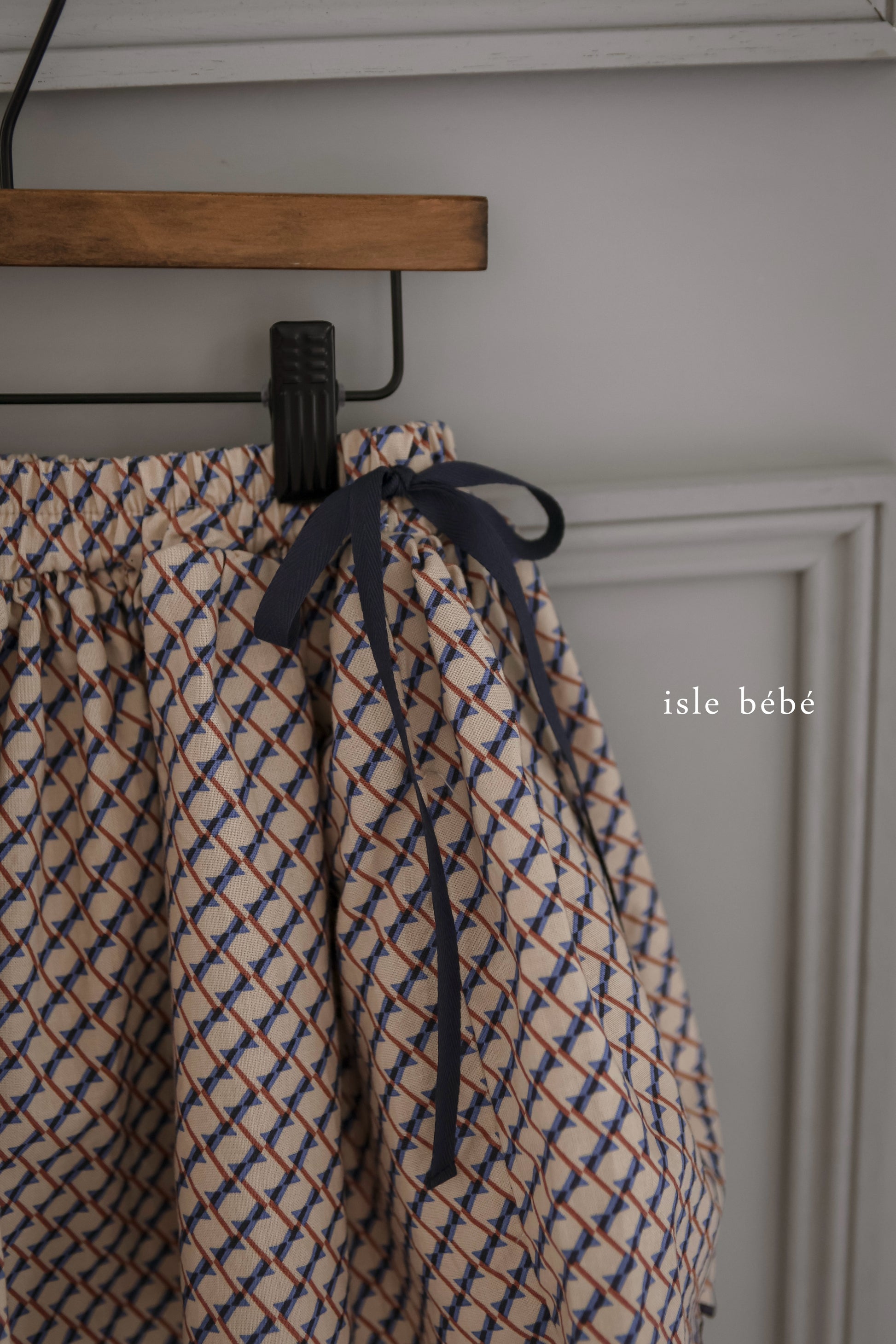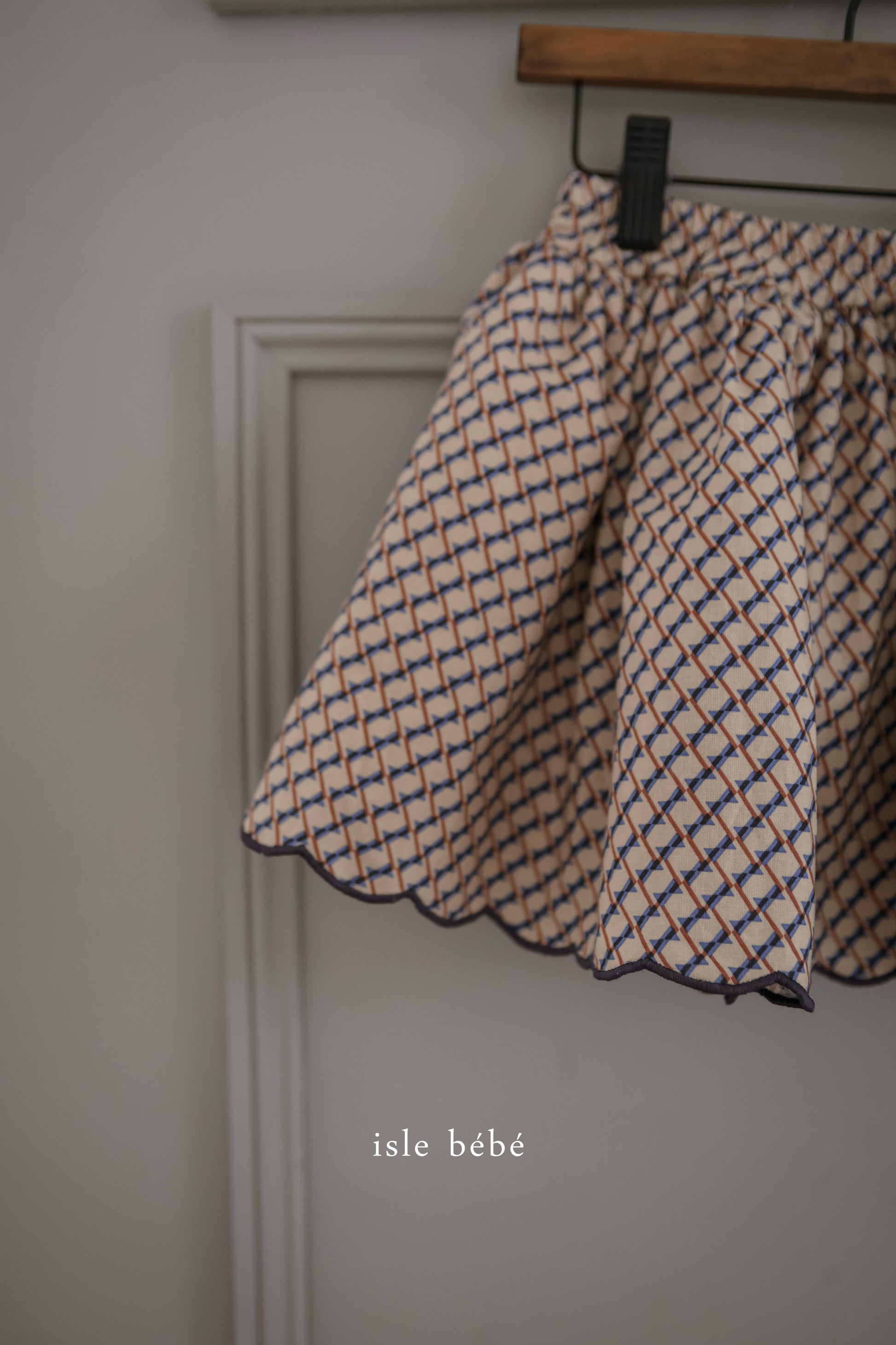 韓国で一目惚れした個性的な柄の生地を美しいシルエットのスカートに仕立てました。