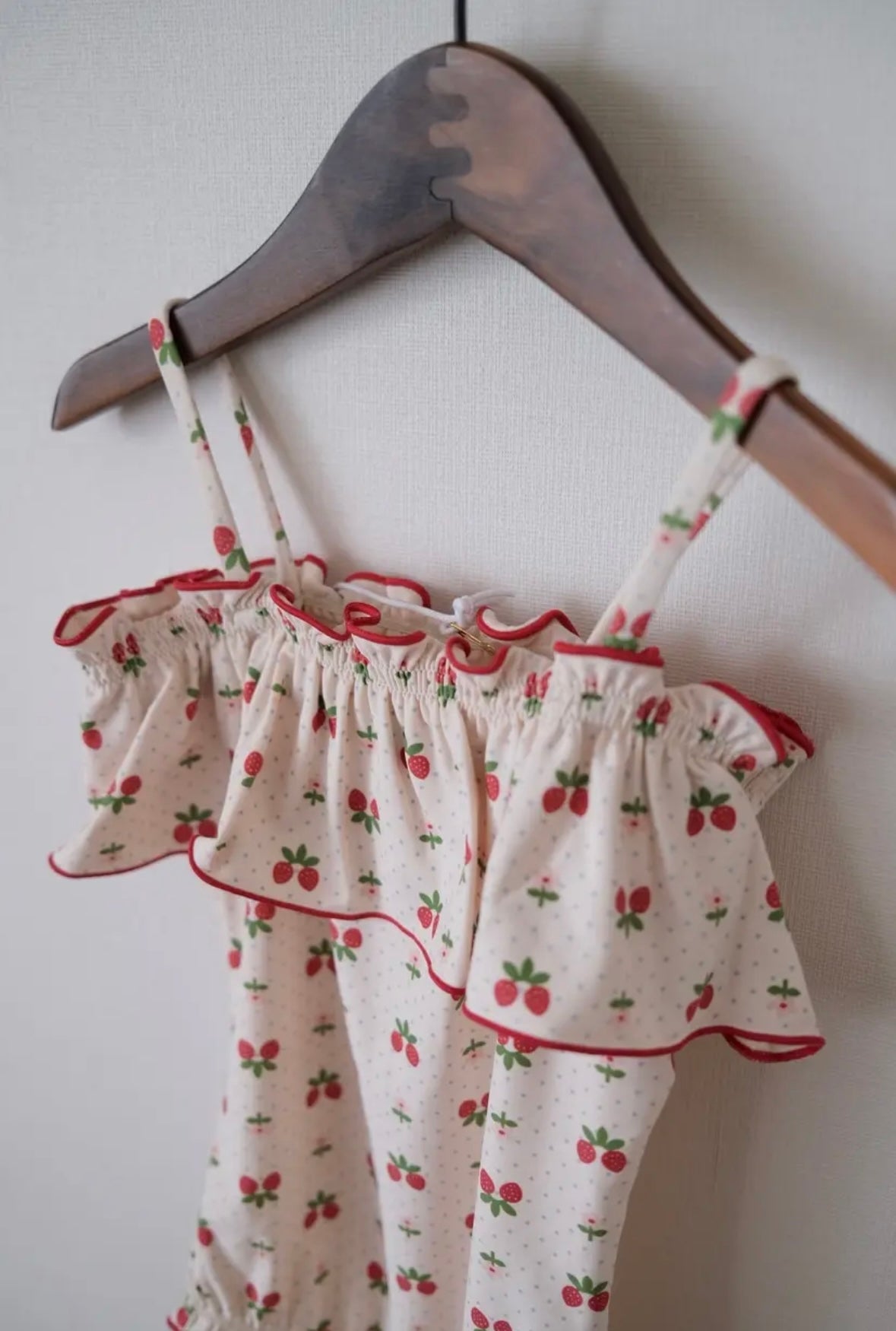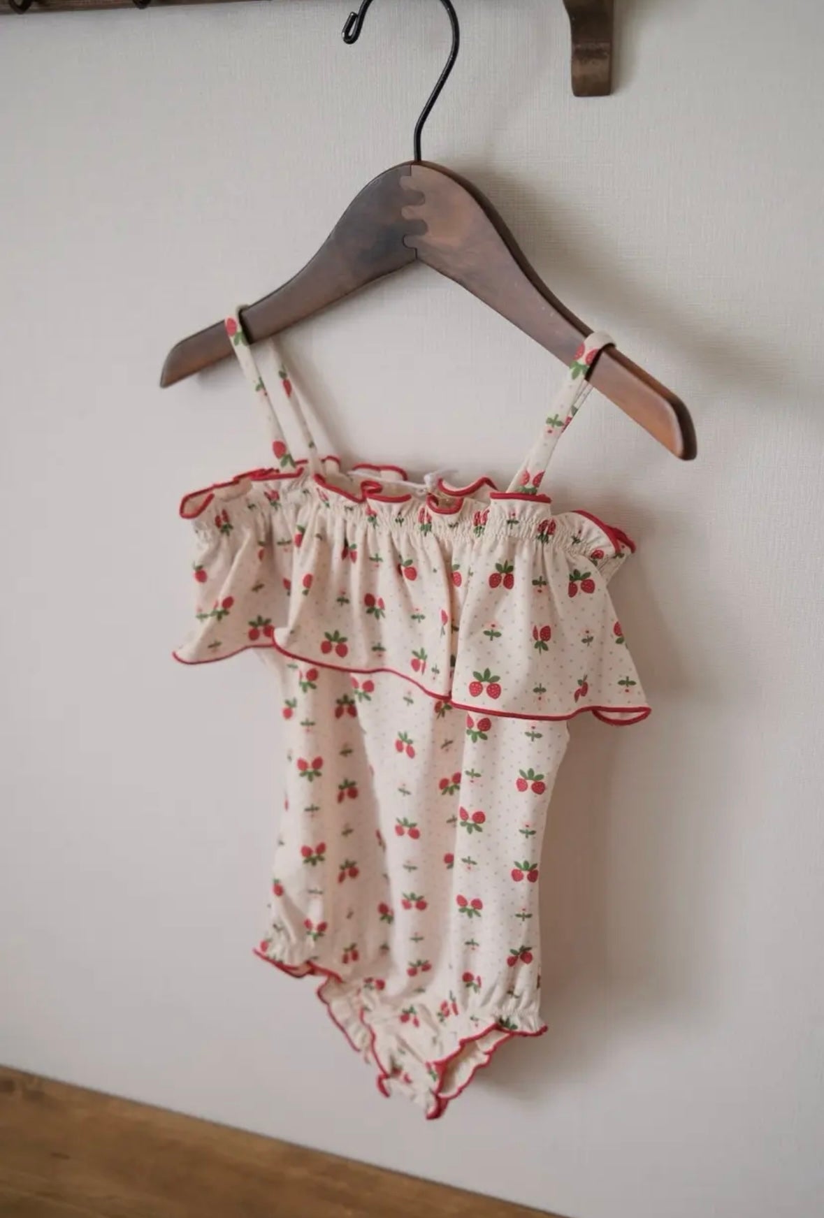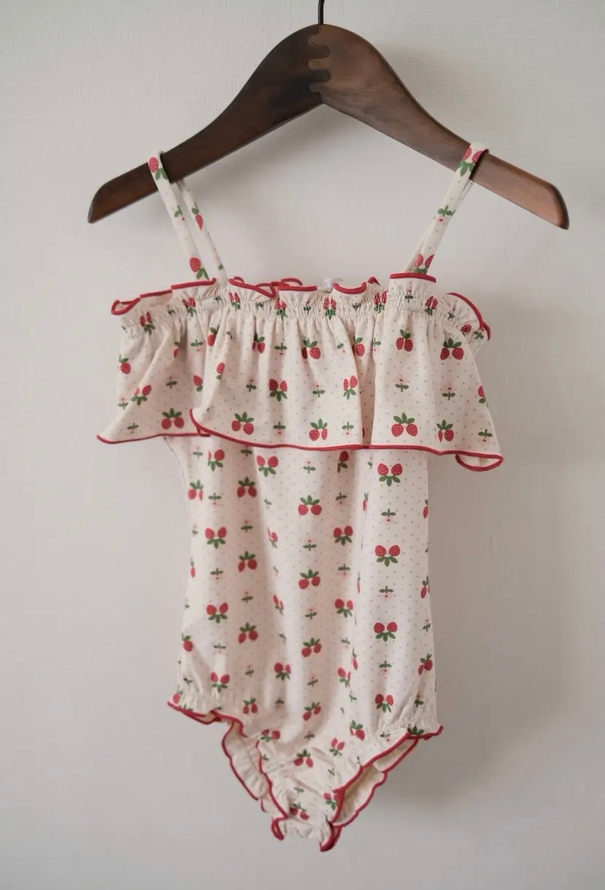 イチゴのプリントが全面に施された子供らしくかわいい水着です♪