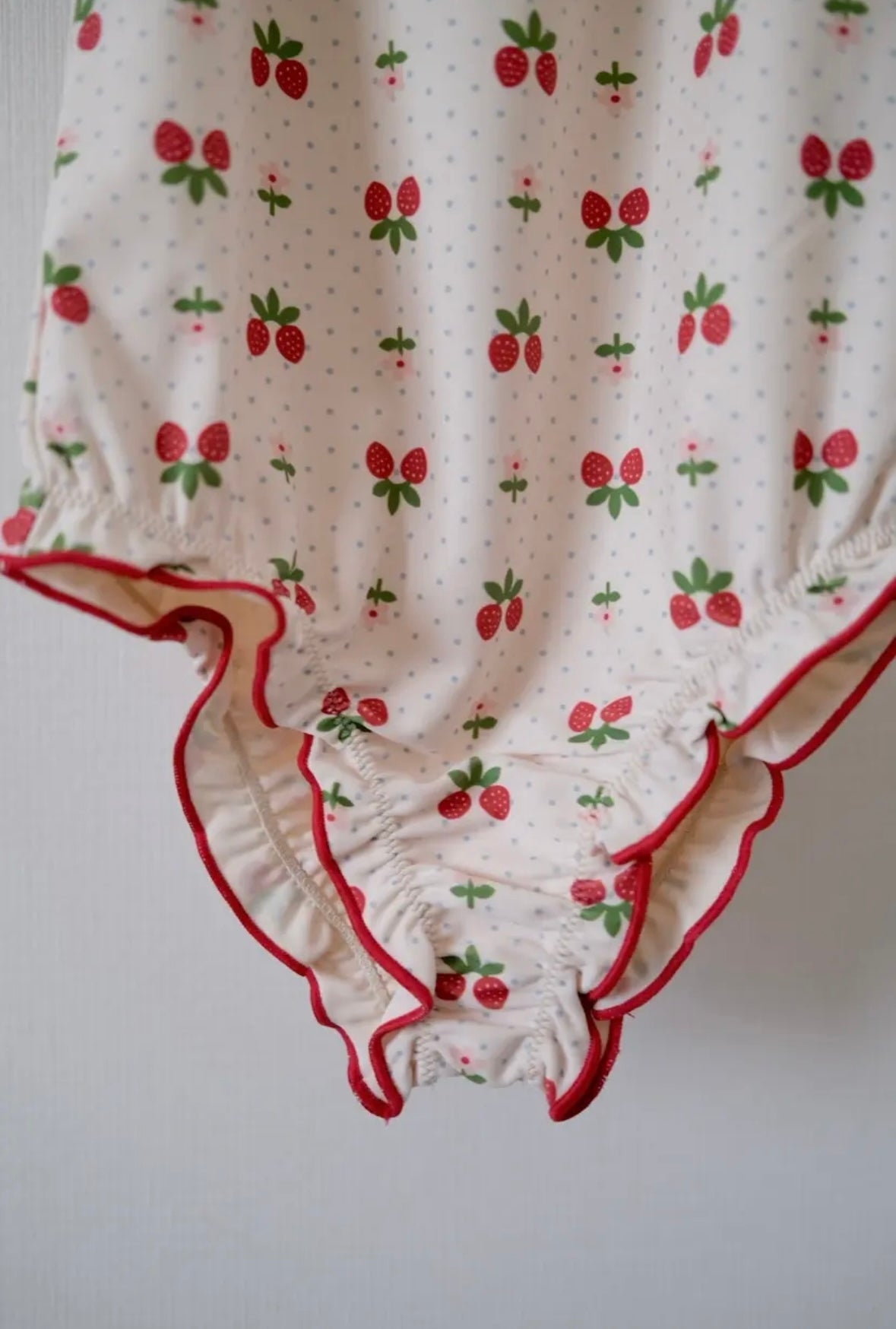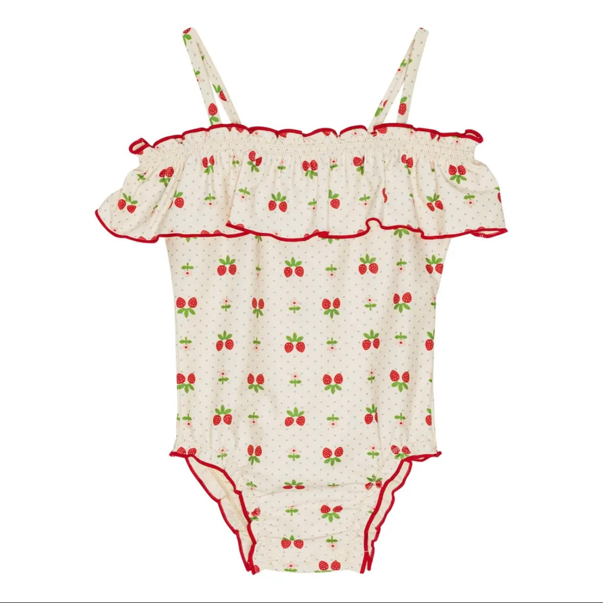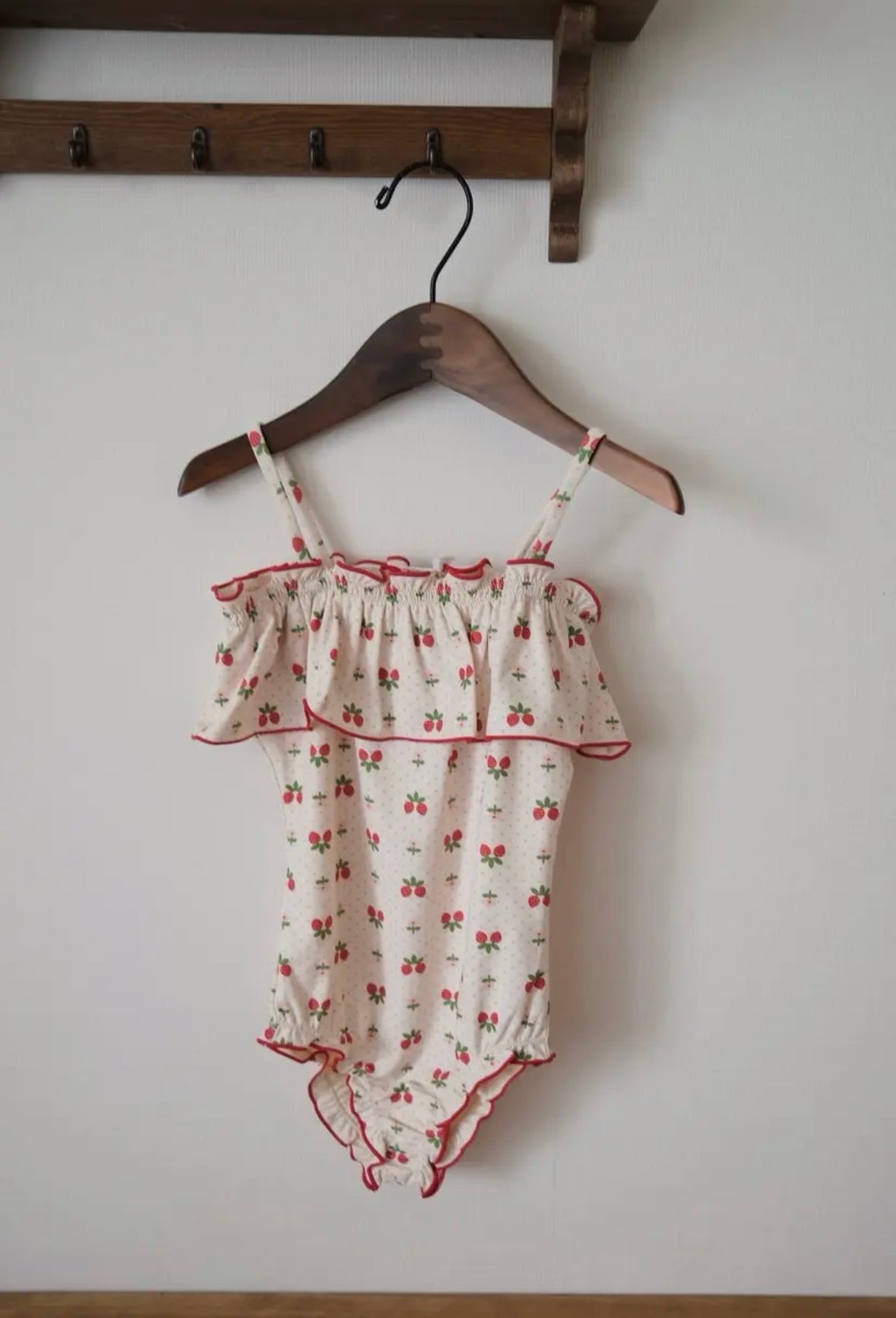 イチゴのプリントが全面に施された子供らしくかわいい水着です♪