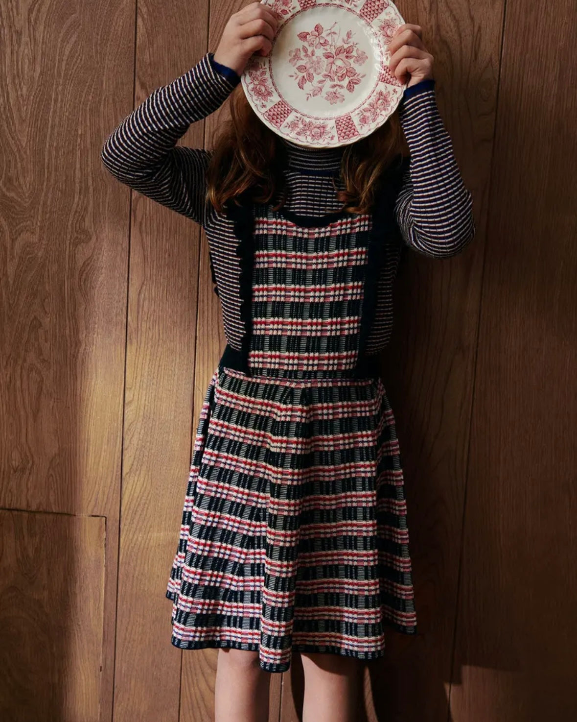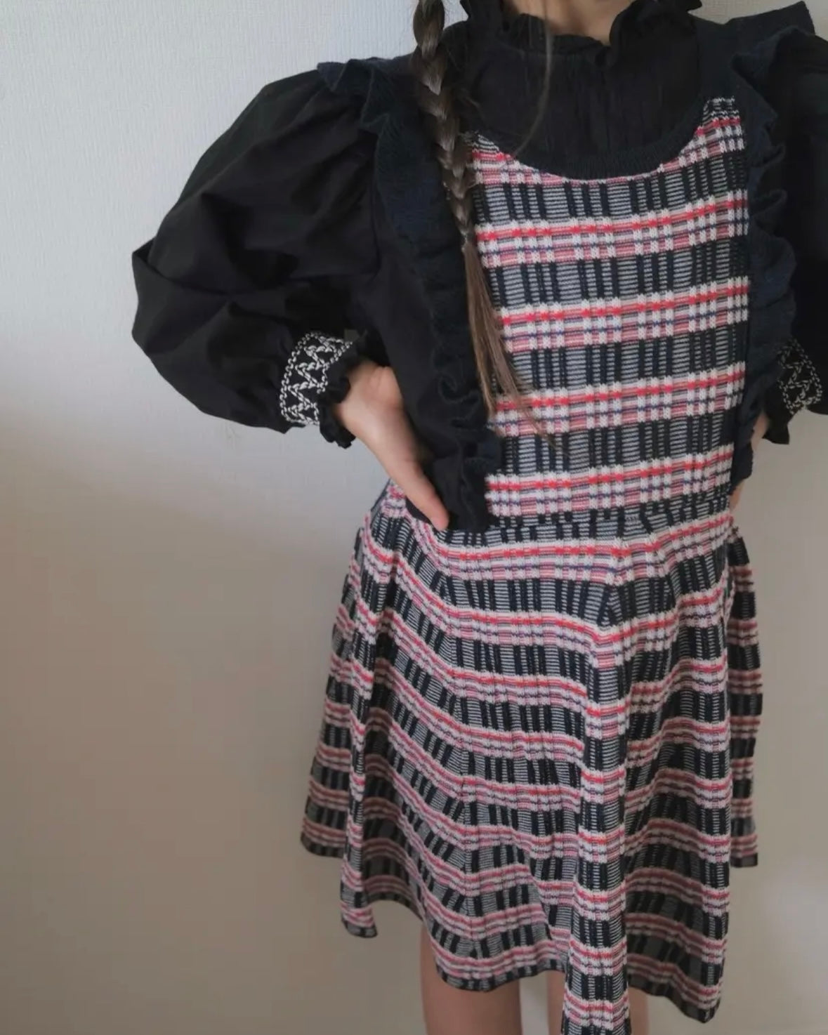 サスペンダー部分のフリルは存在感ありつつも甘くなくシックで
