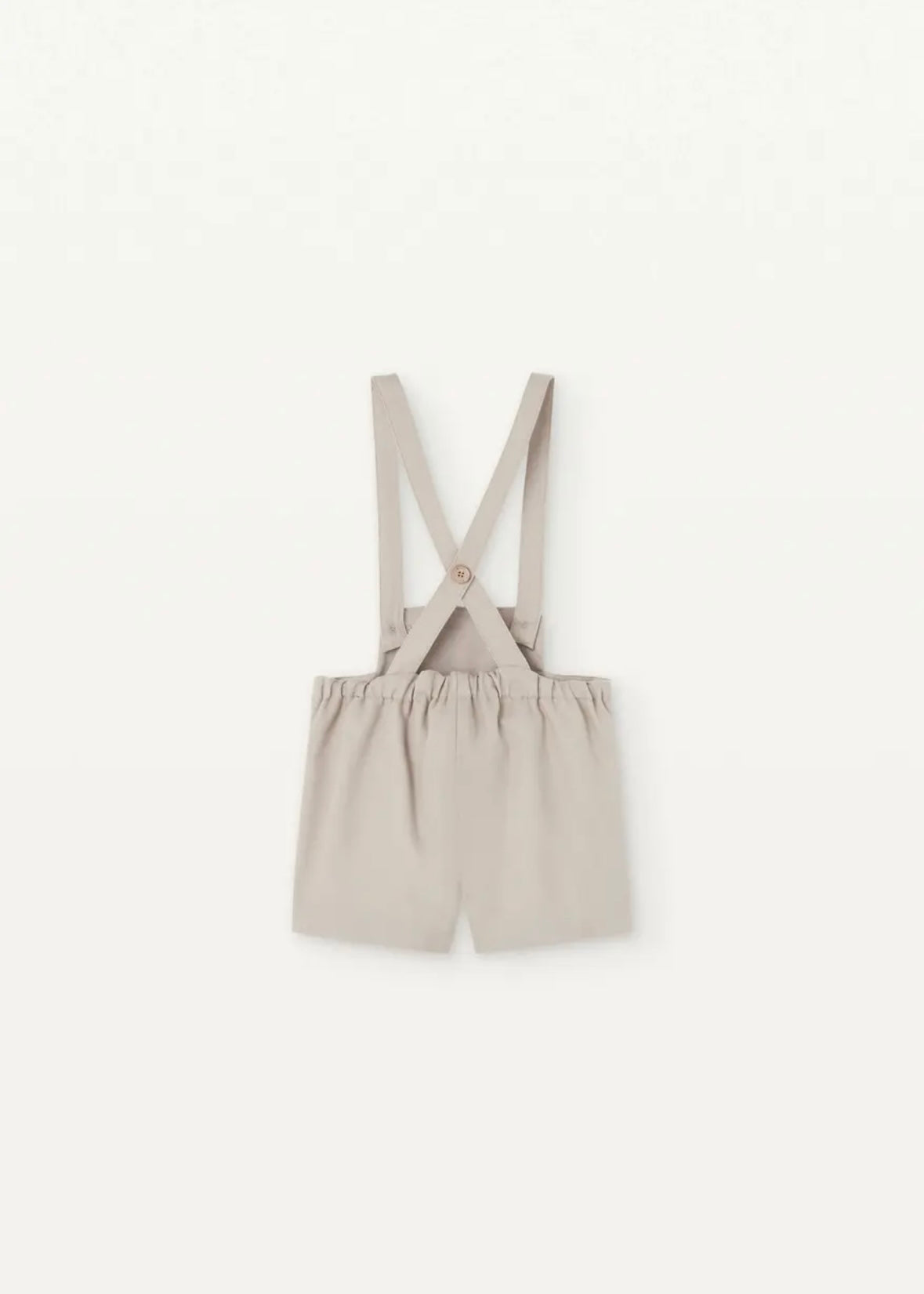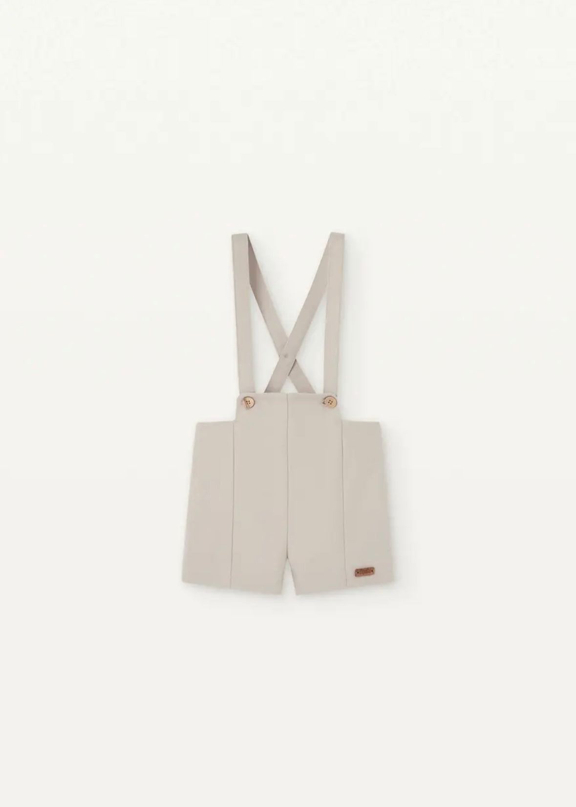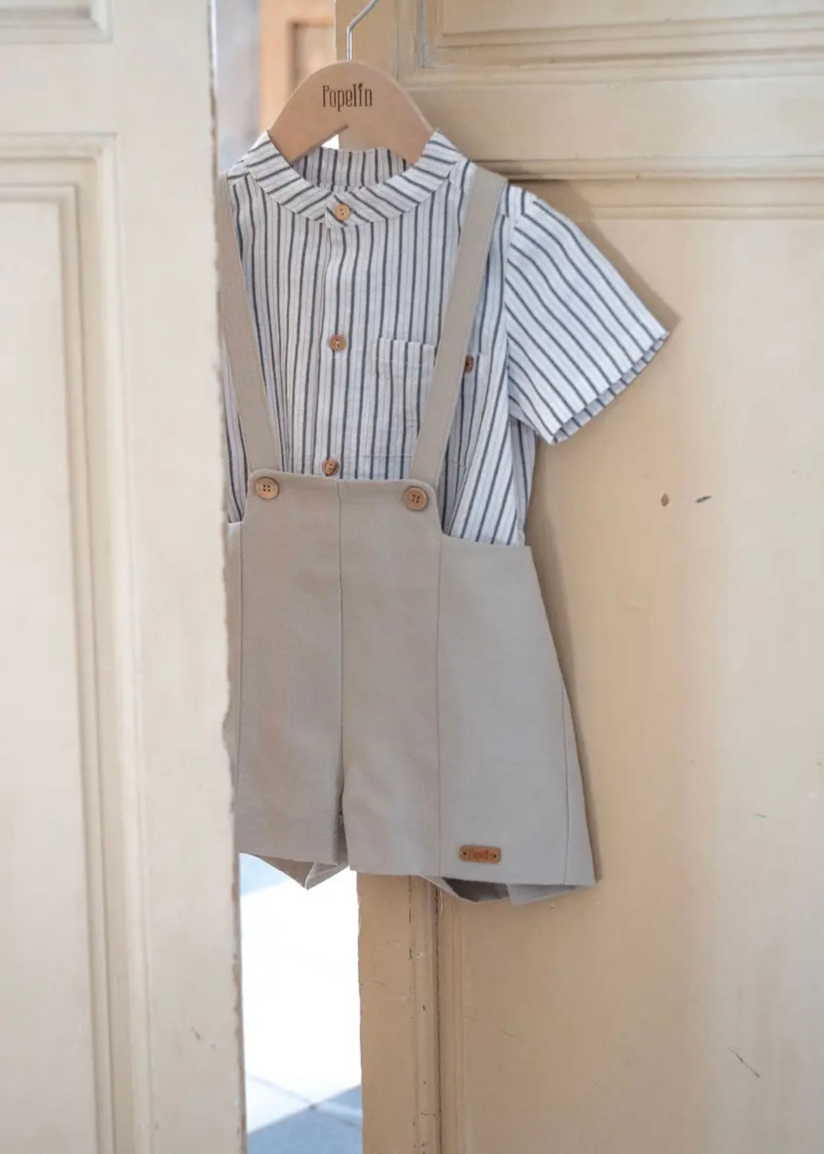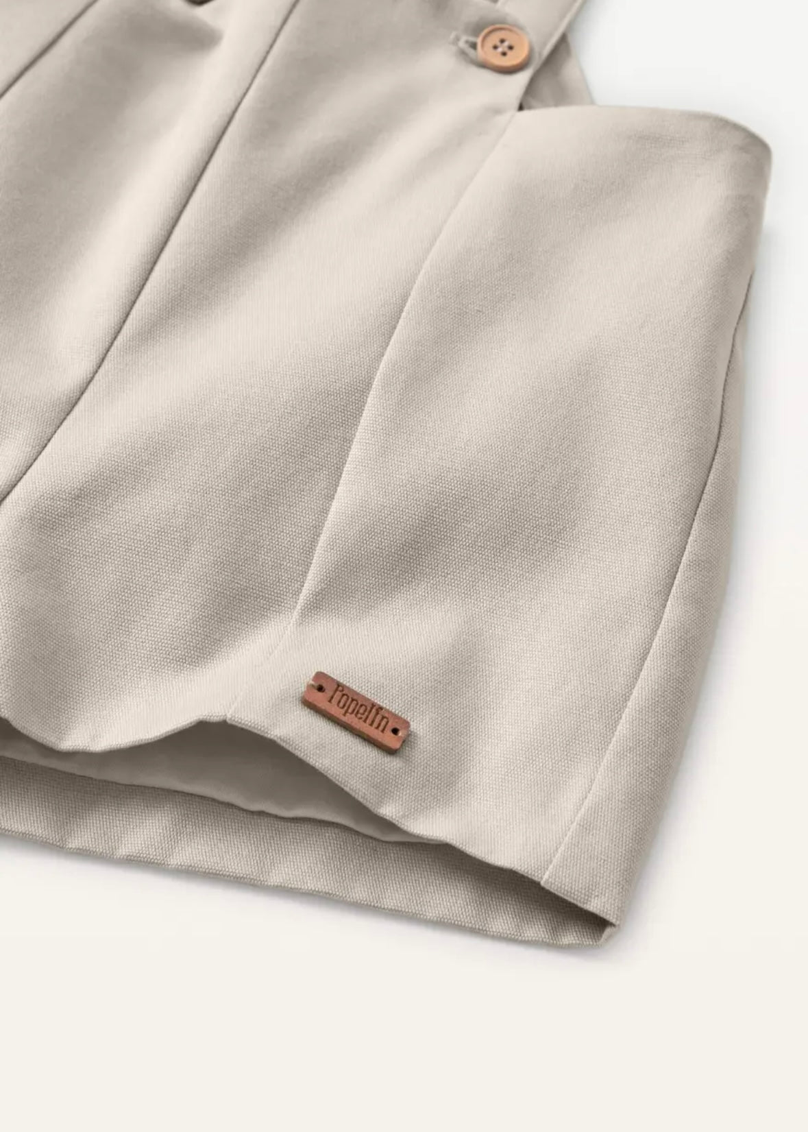 フロントに木製ボタンが付いたコントラストのあるダンガリー。