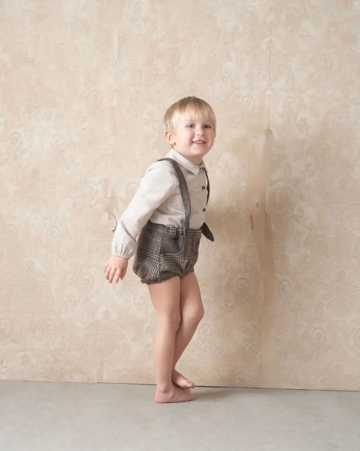 Popelin / Brown plaid woollen culotte with removable straps and placket