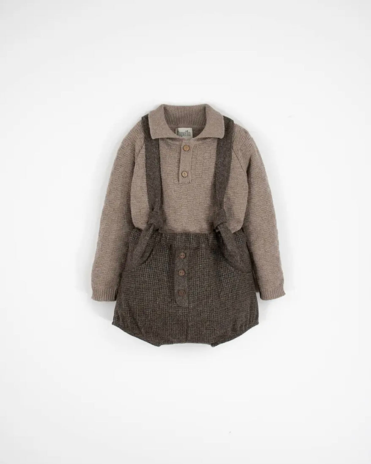 Popelin / Multi-coloured woollen culotte with removable straps and placket