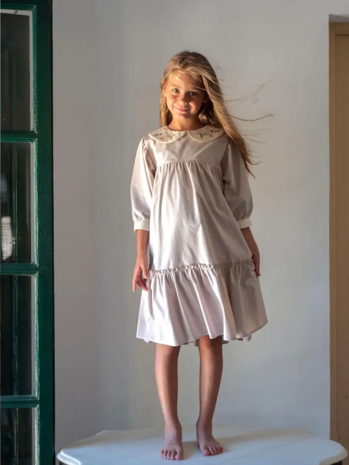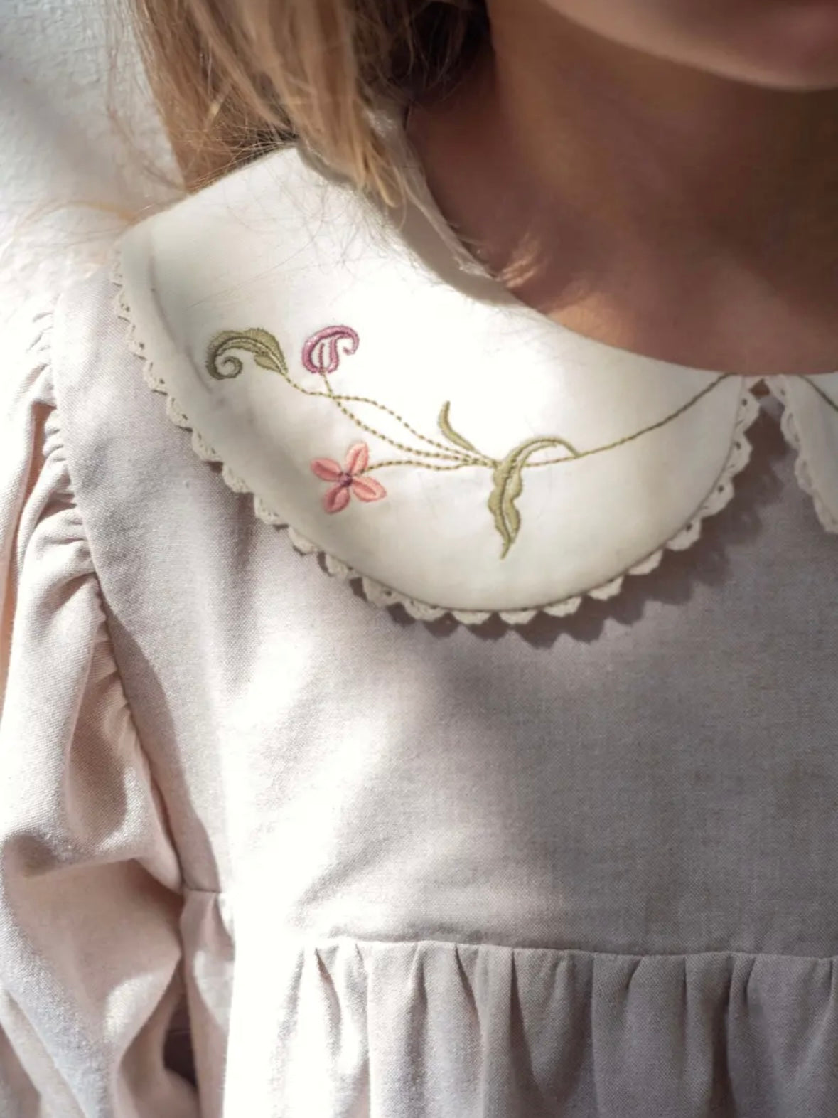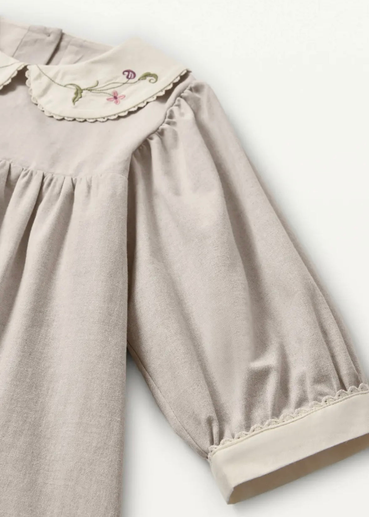 Popelin / Sand dress with embroidered baby collar