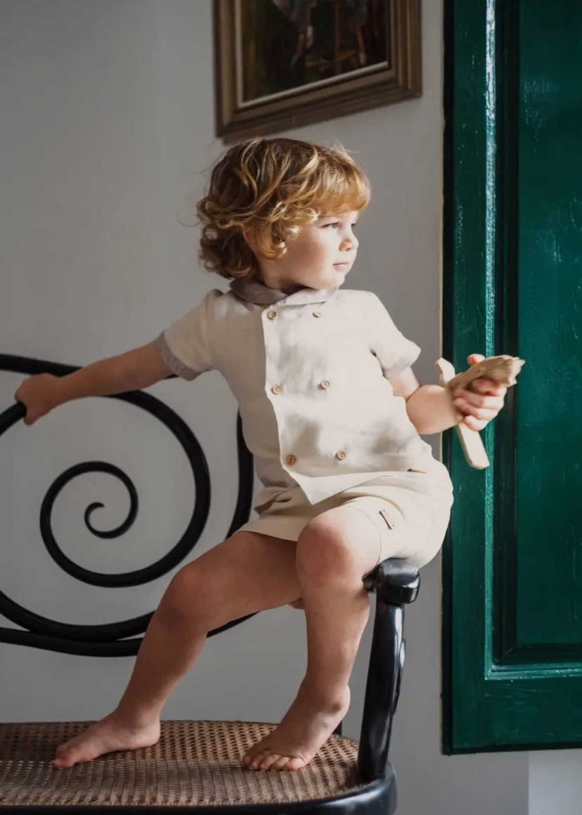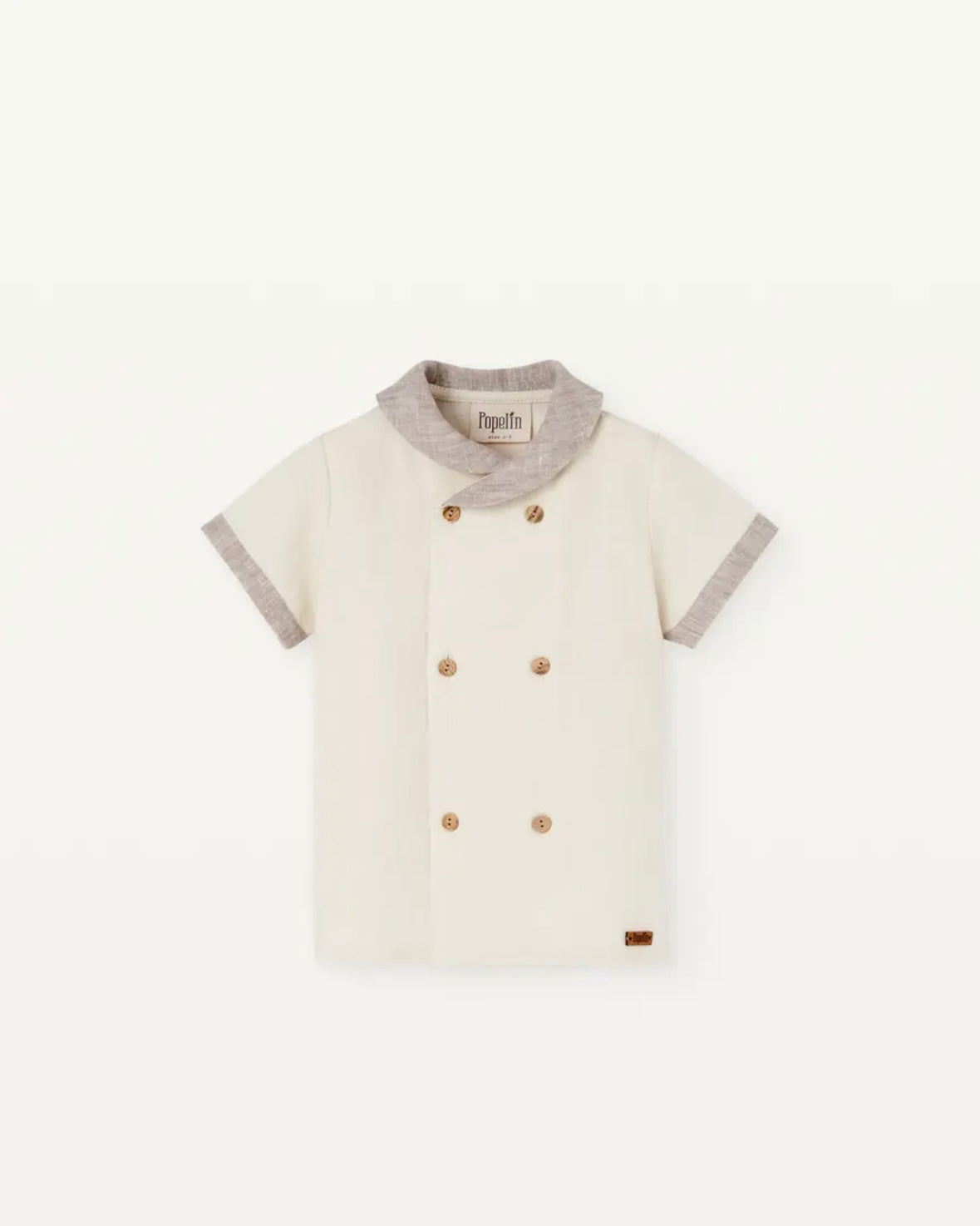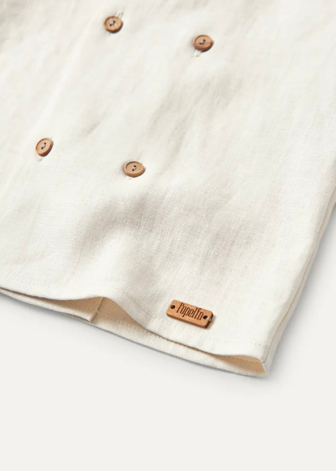 ウッドダブルボタンとセーラーカラーがかわいいリネンシャツ