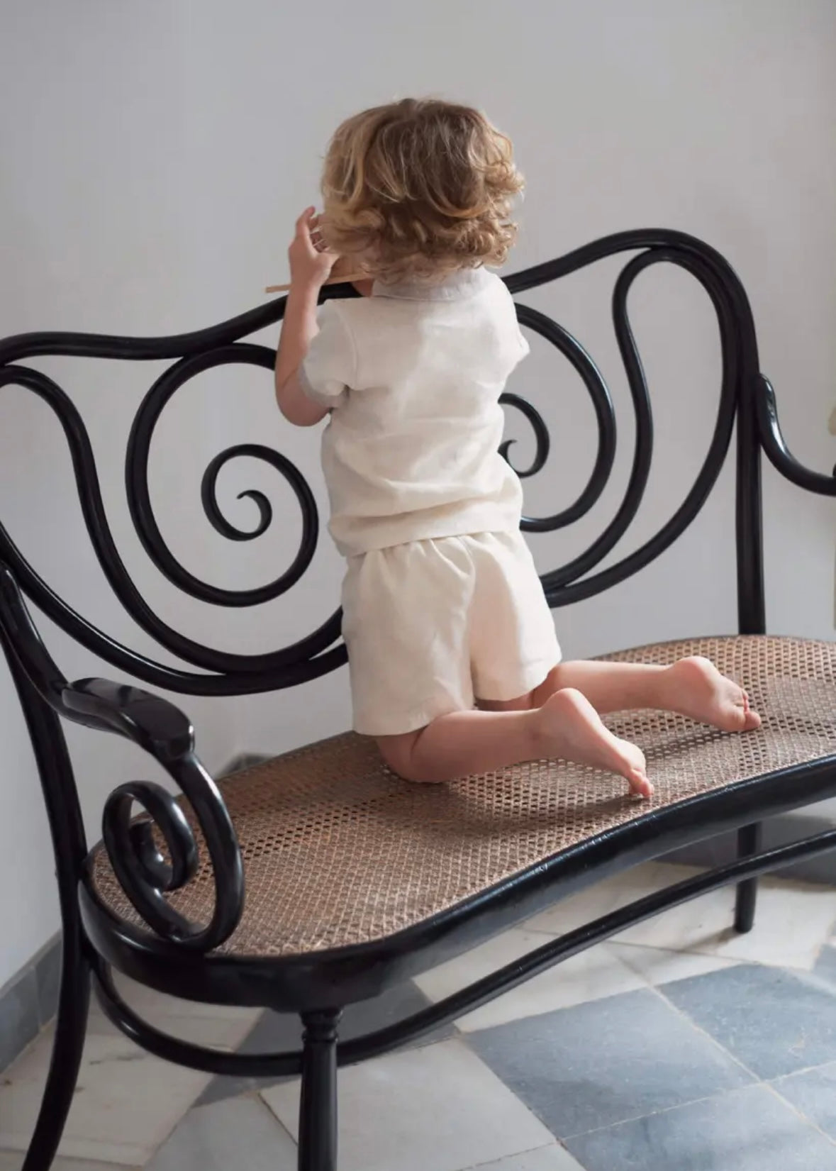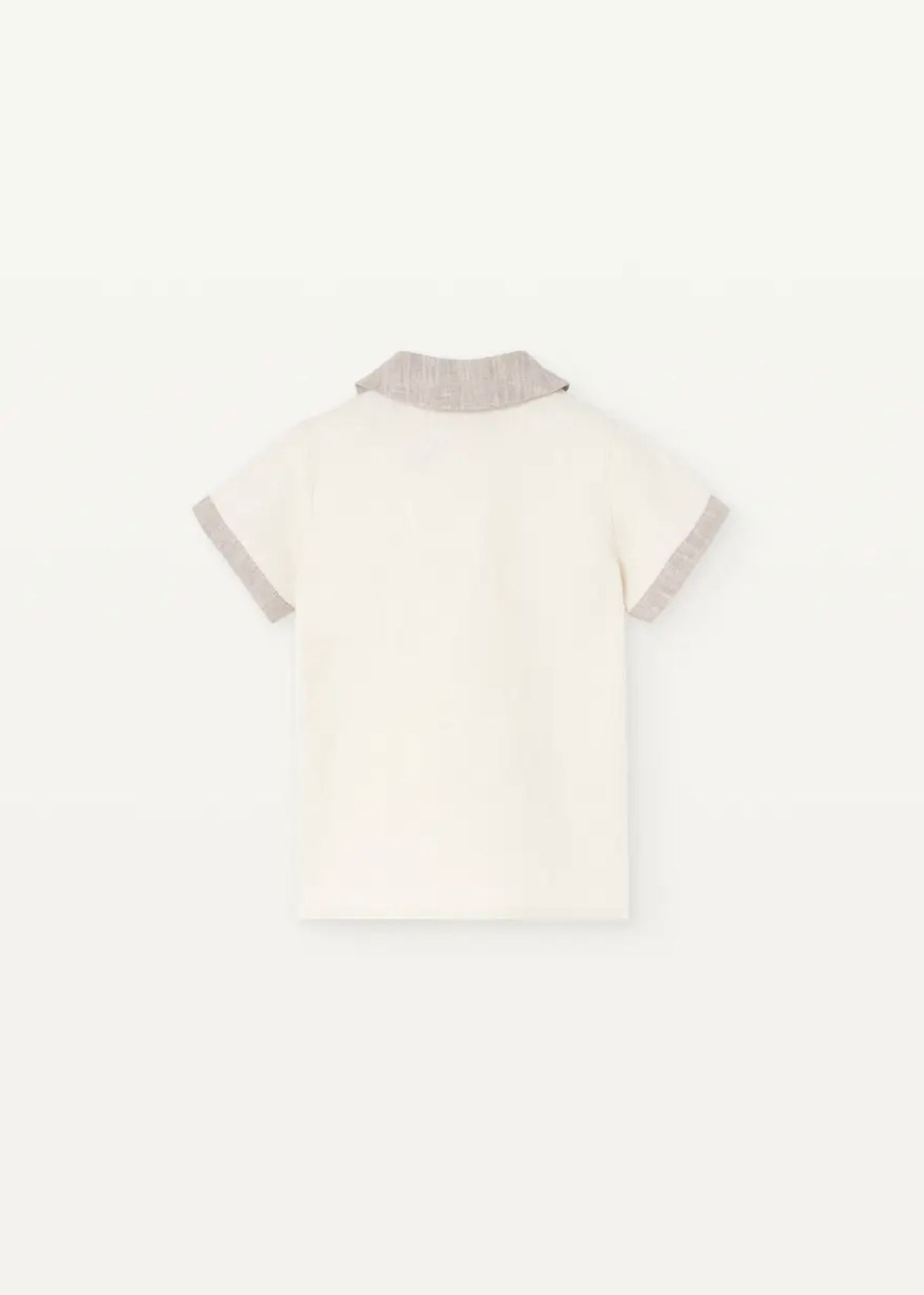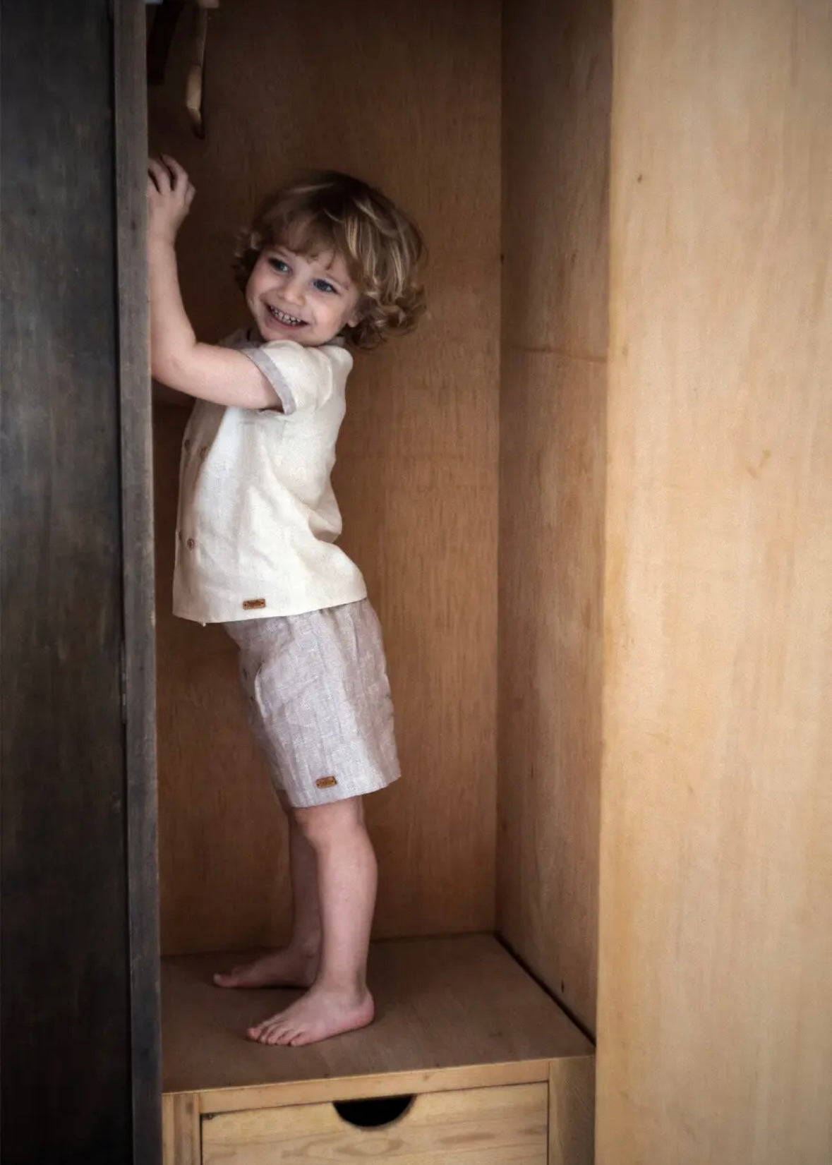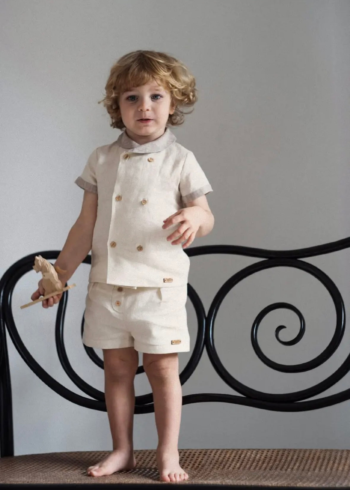 ウッドダブルボタンとセーラーカラーがかわいいリネンシャツ
