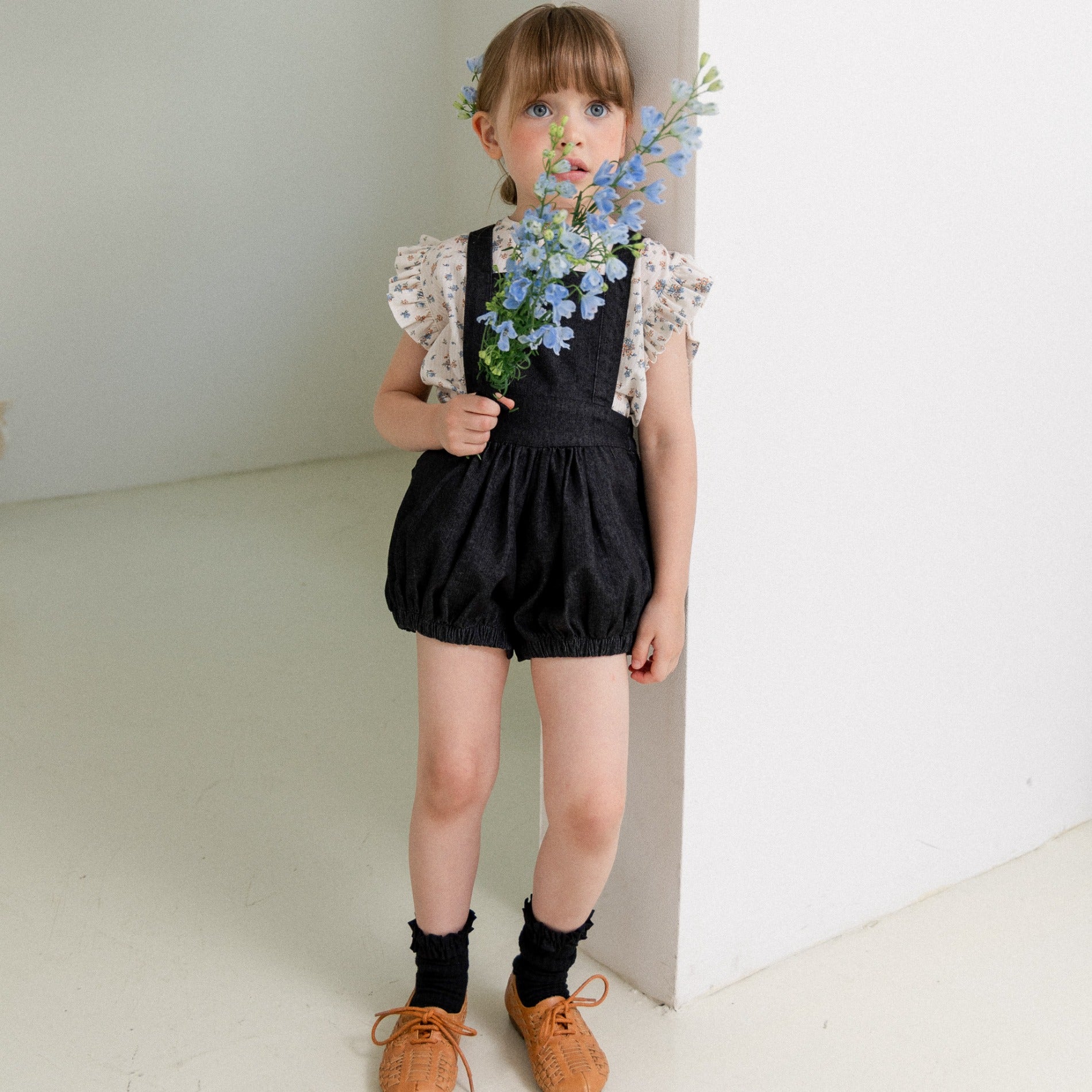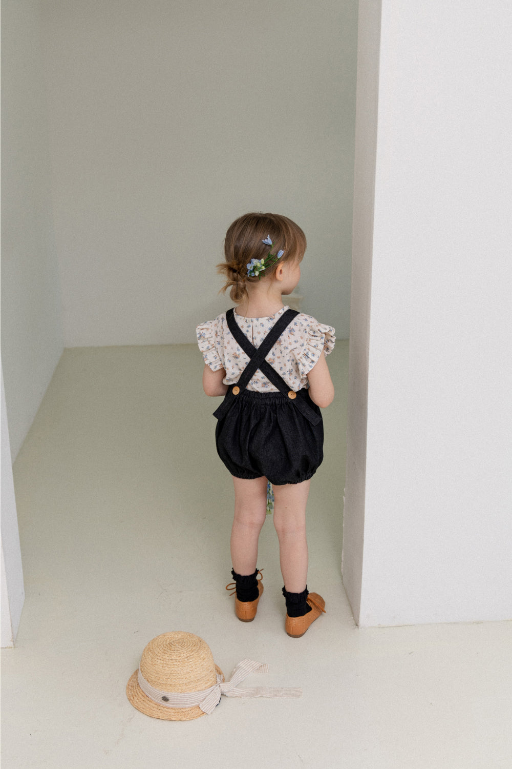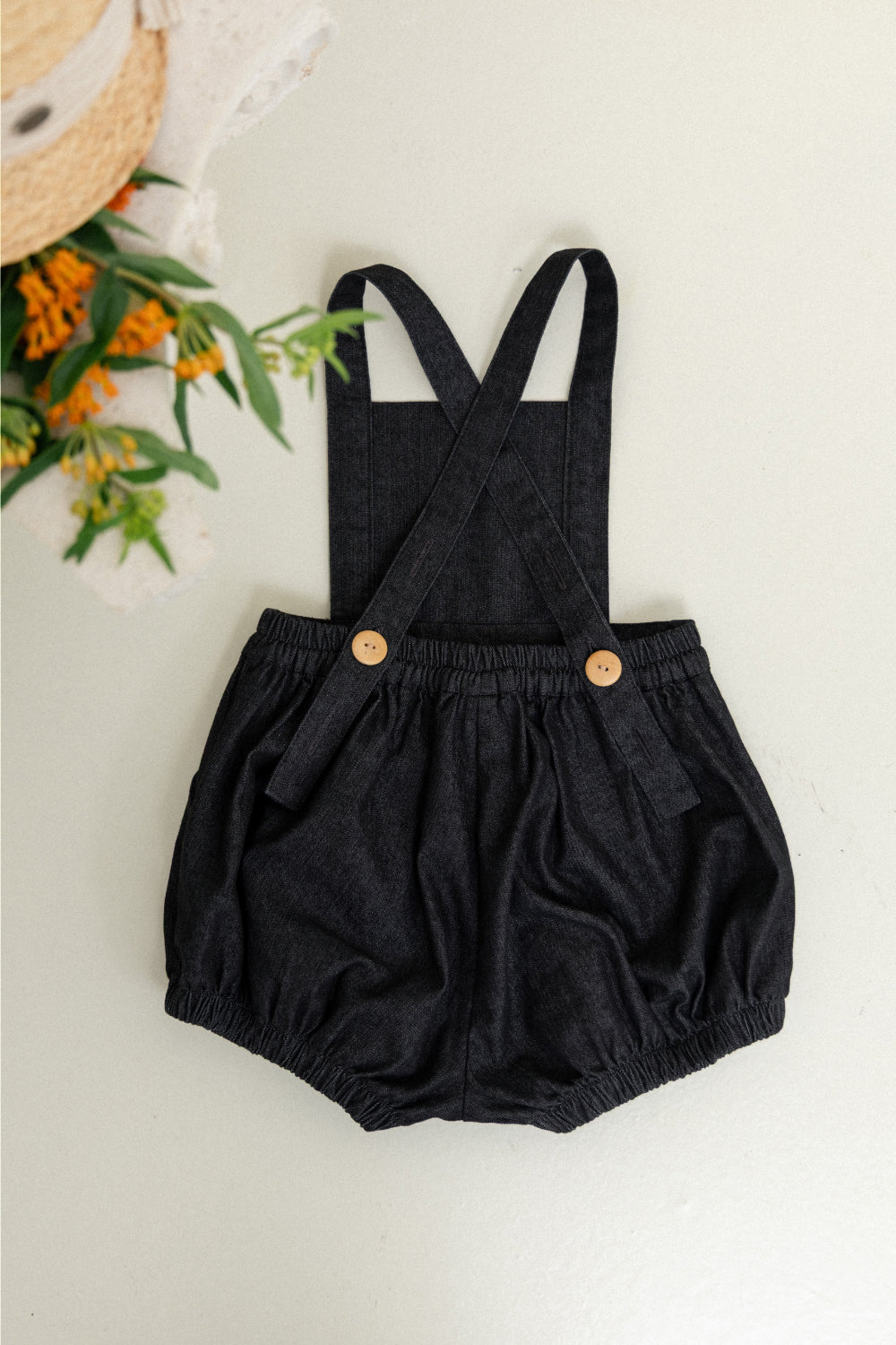 wonny ribbon / Black denim romper