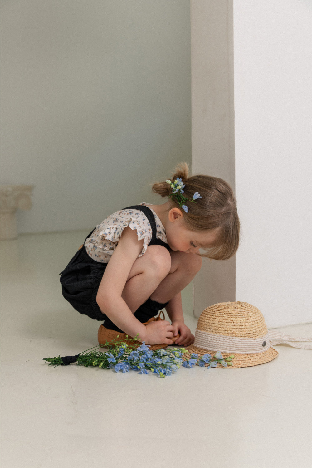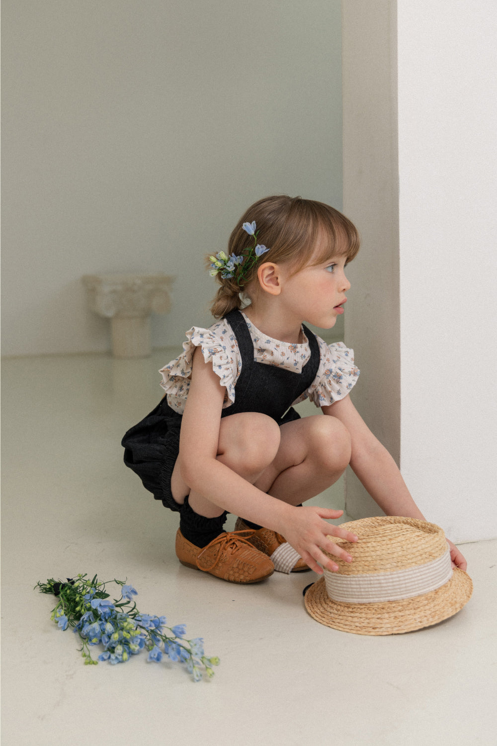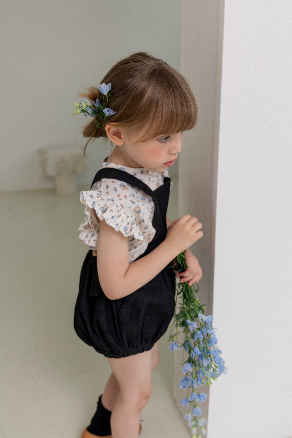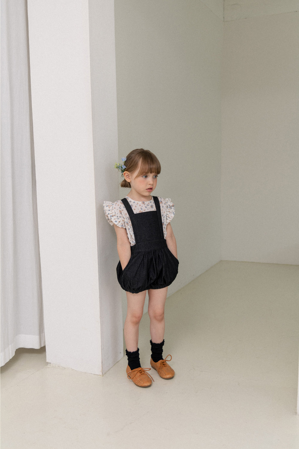 wonny ribbon / Black denim romper