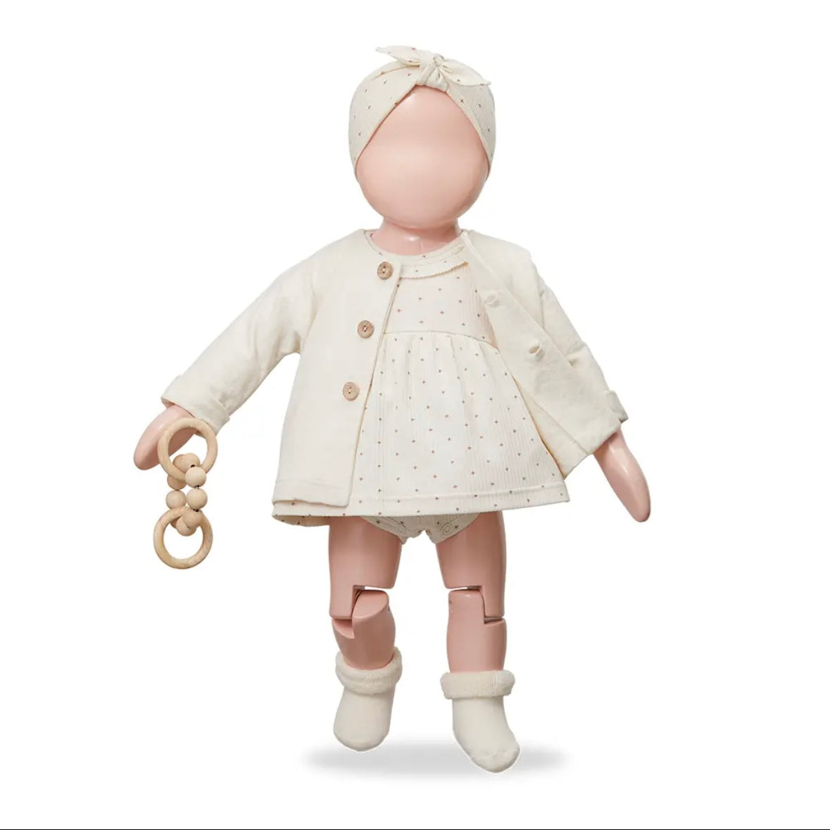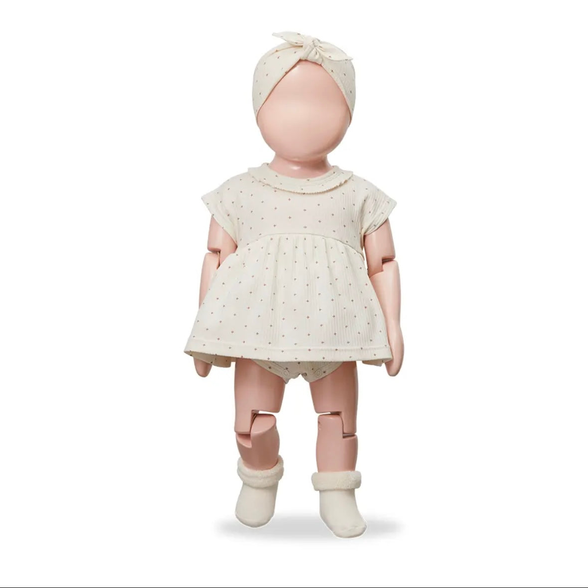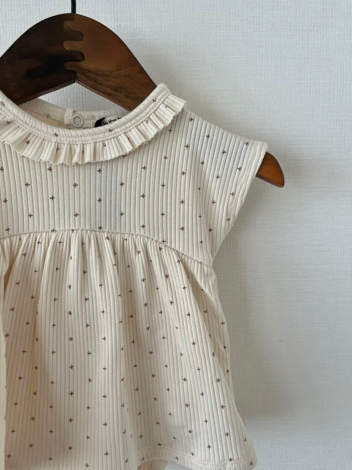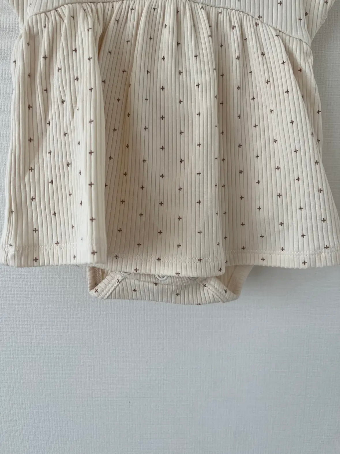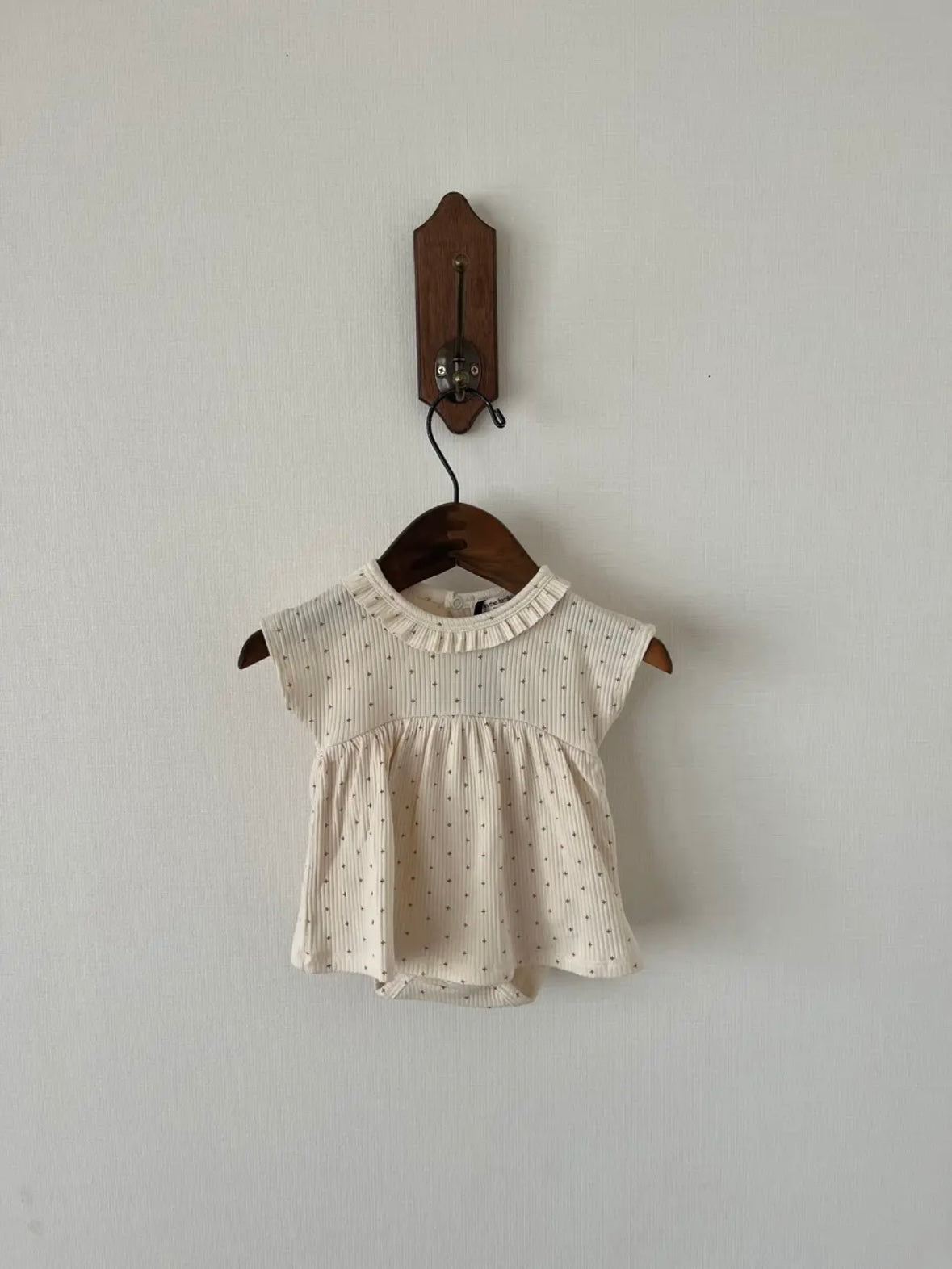 這款連身裙採用柔和的十字點設計。採用柔軟耐穿的布料,具有卓越的體溫調節功能。領口飾有荷葉邊,背面配有按扣。
